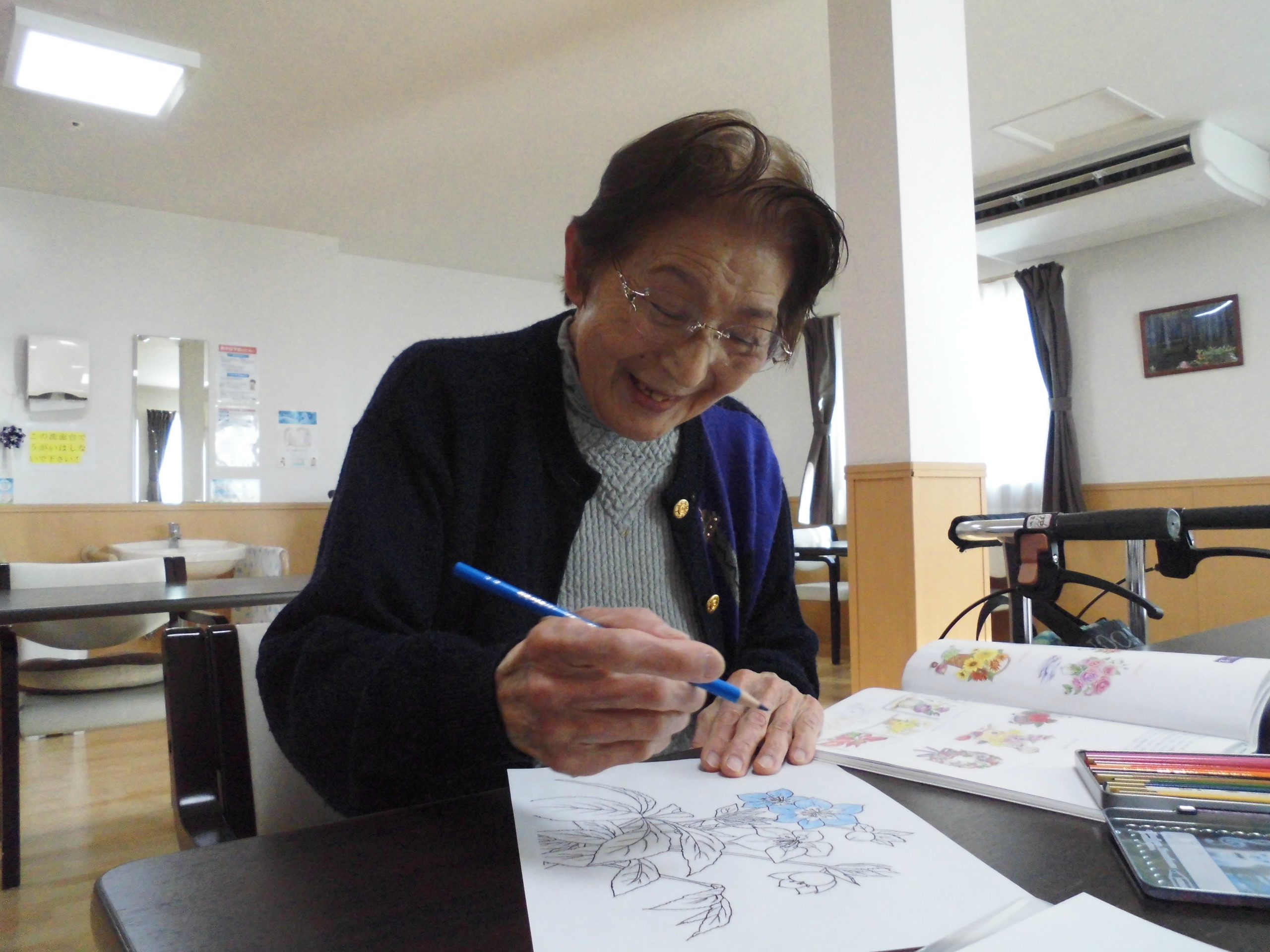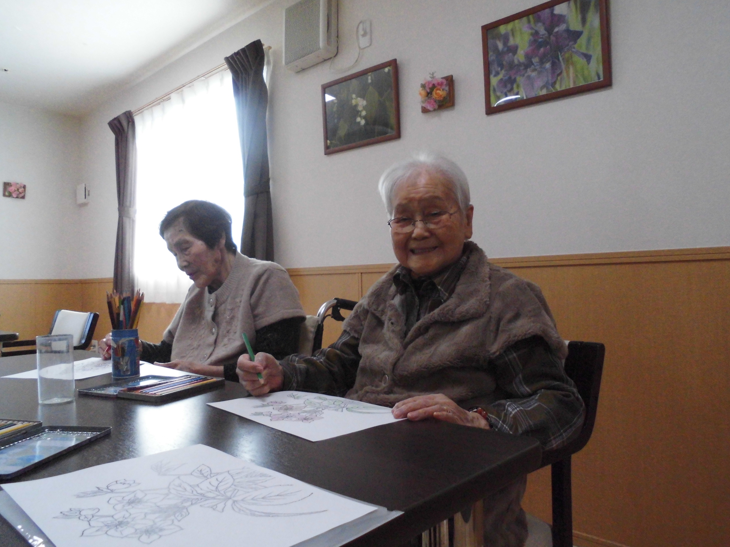 お花が好きな入居者様が多くいつもお花の塗り絵が人気でございます🌺