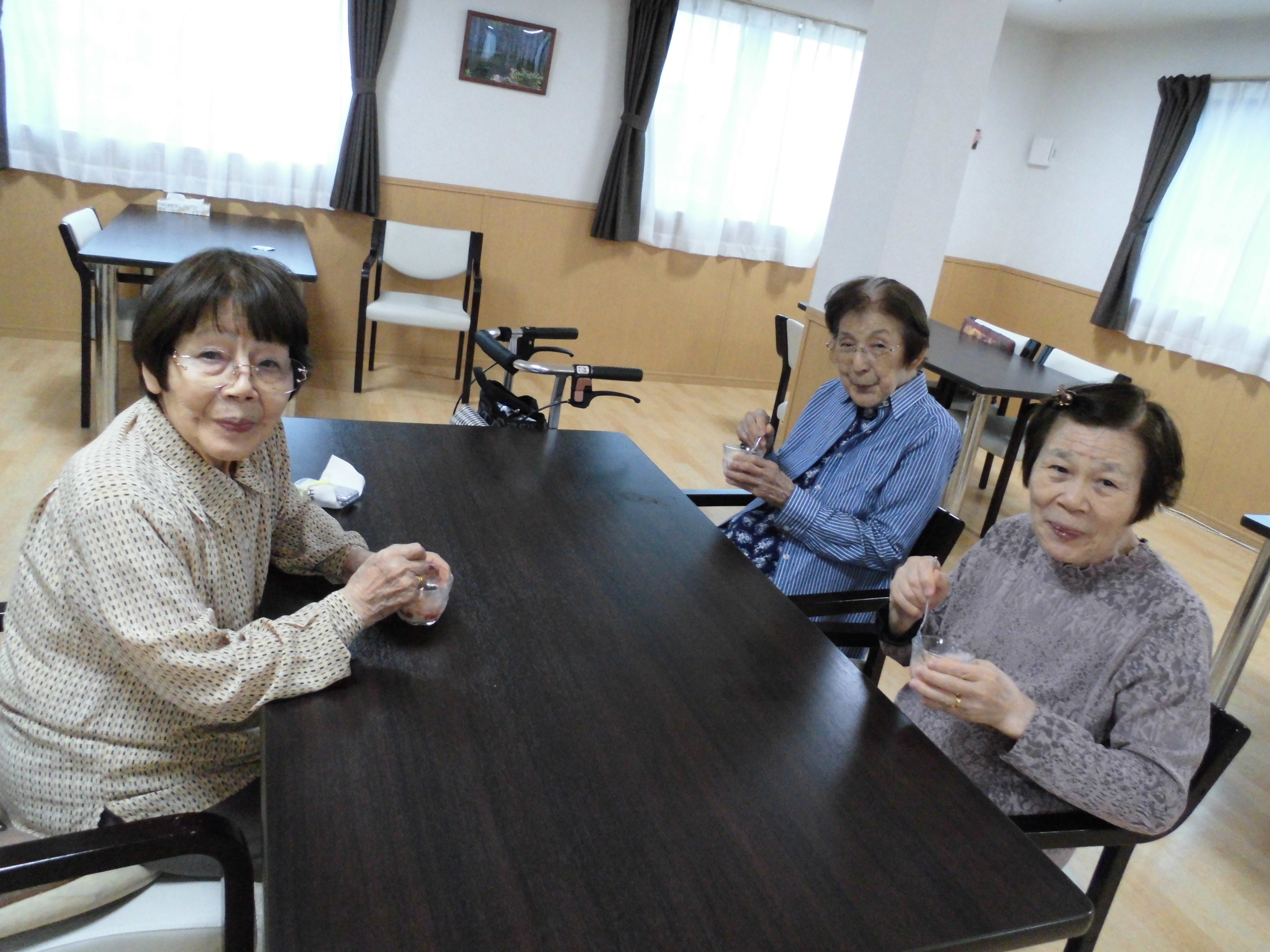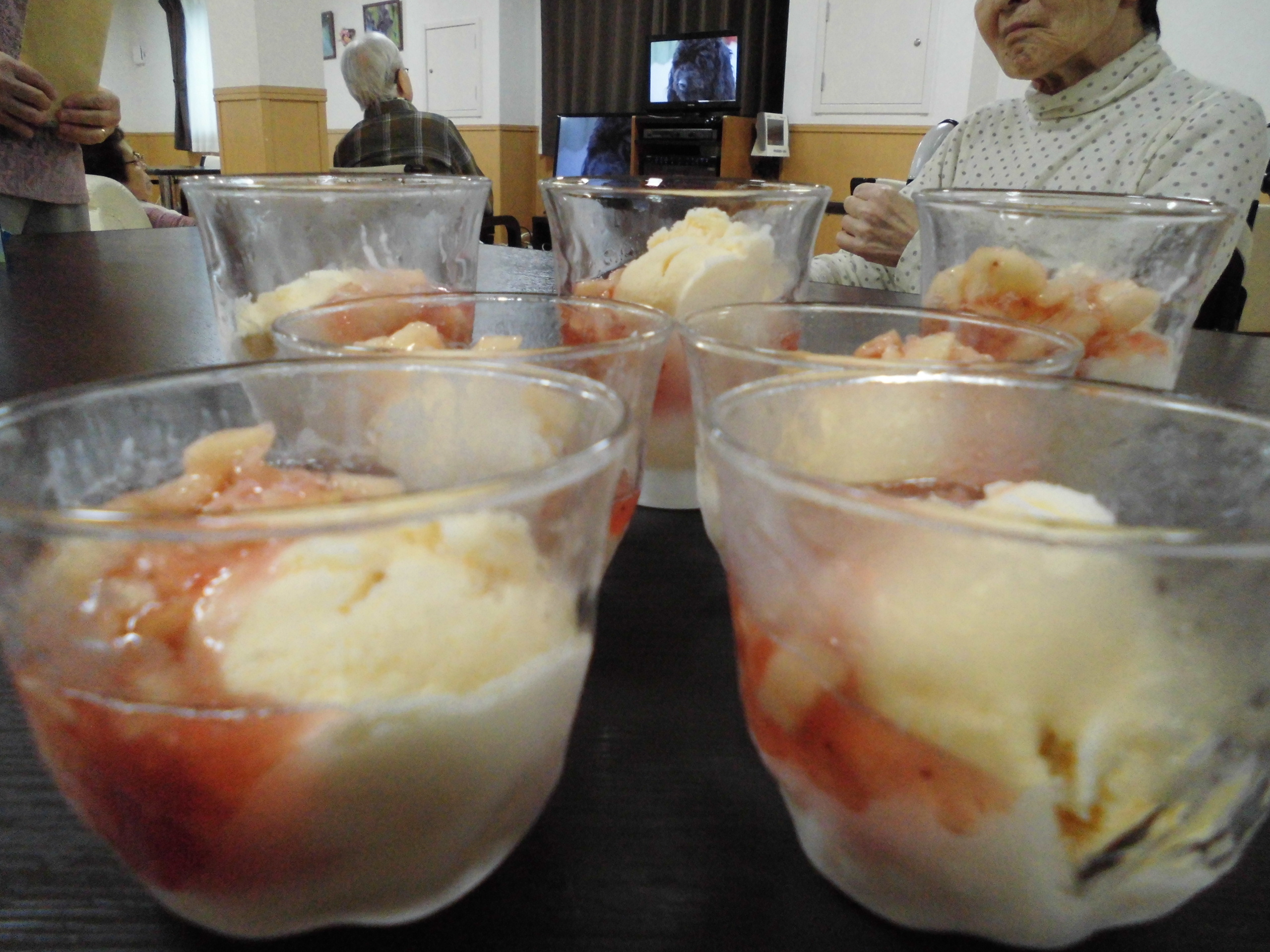 昨日のおやつは「桃とイチゴジャムのせアイス」で~す!!