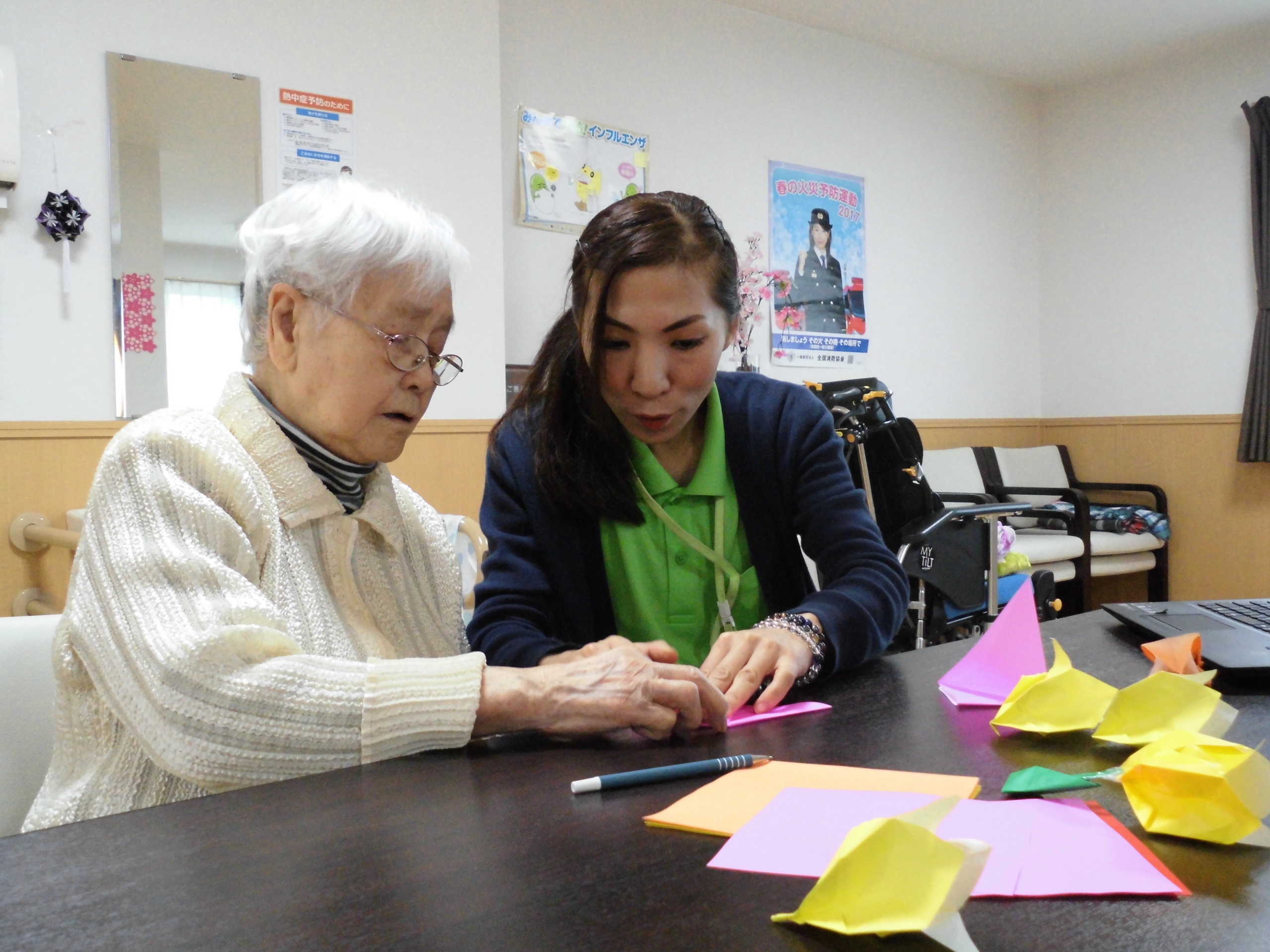 「ちょっと難しいわね~」 「こうやって、こうして…」