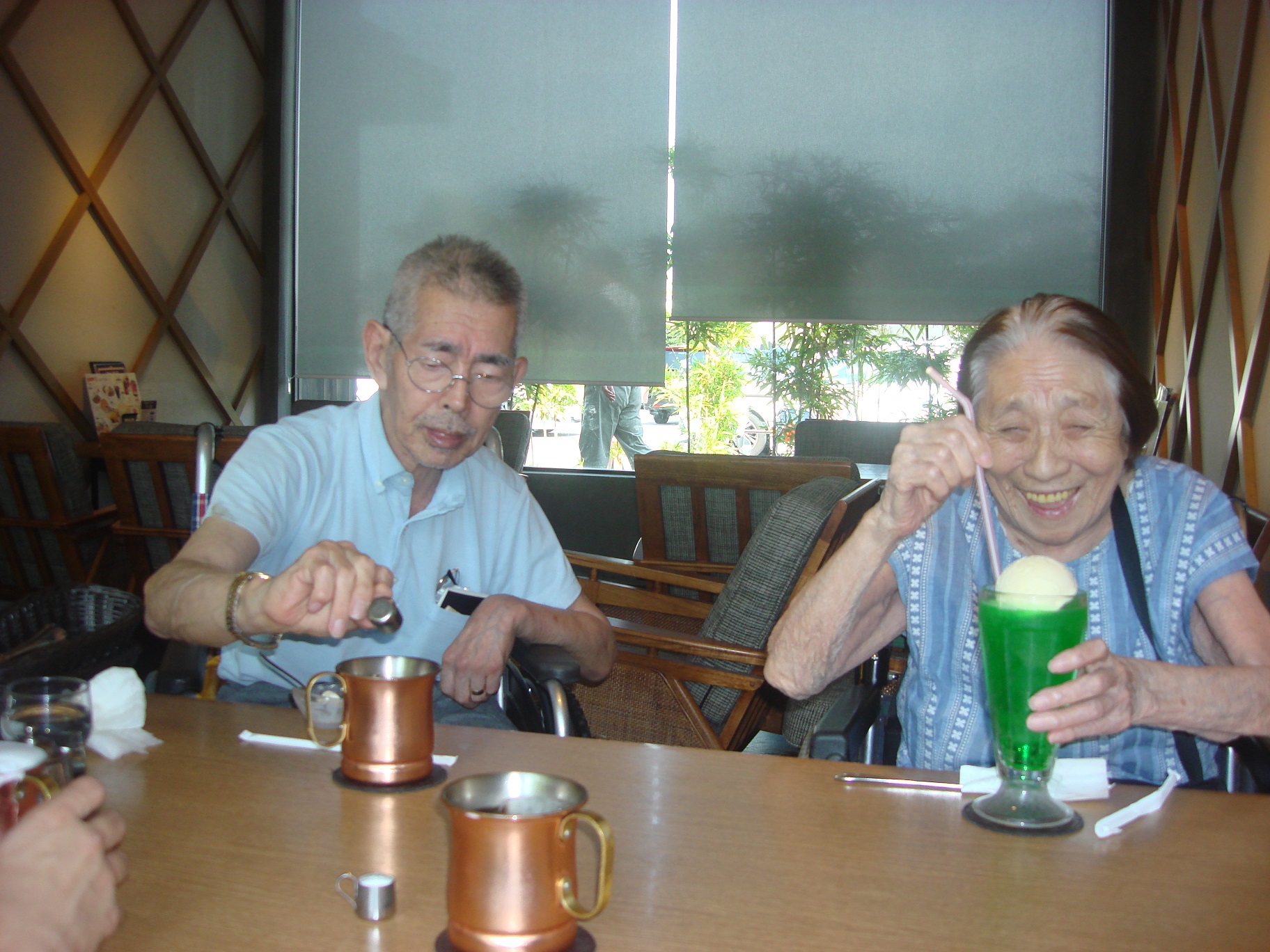 F様のクリームソーダーも美味しそう♪ ミルクピッチャーでカンパーイ