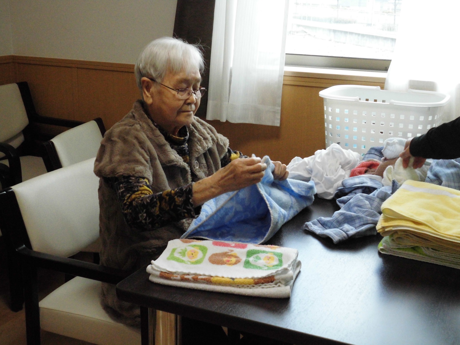 洗濯たたみに奮闘中。