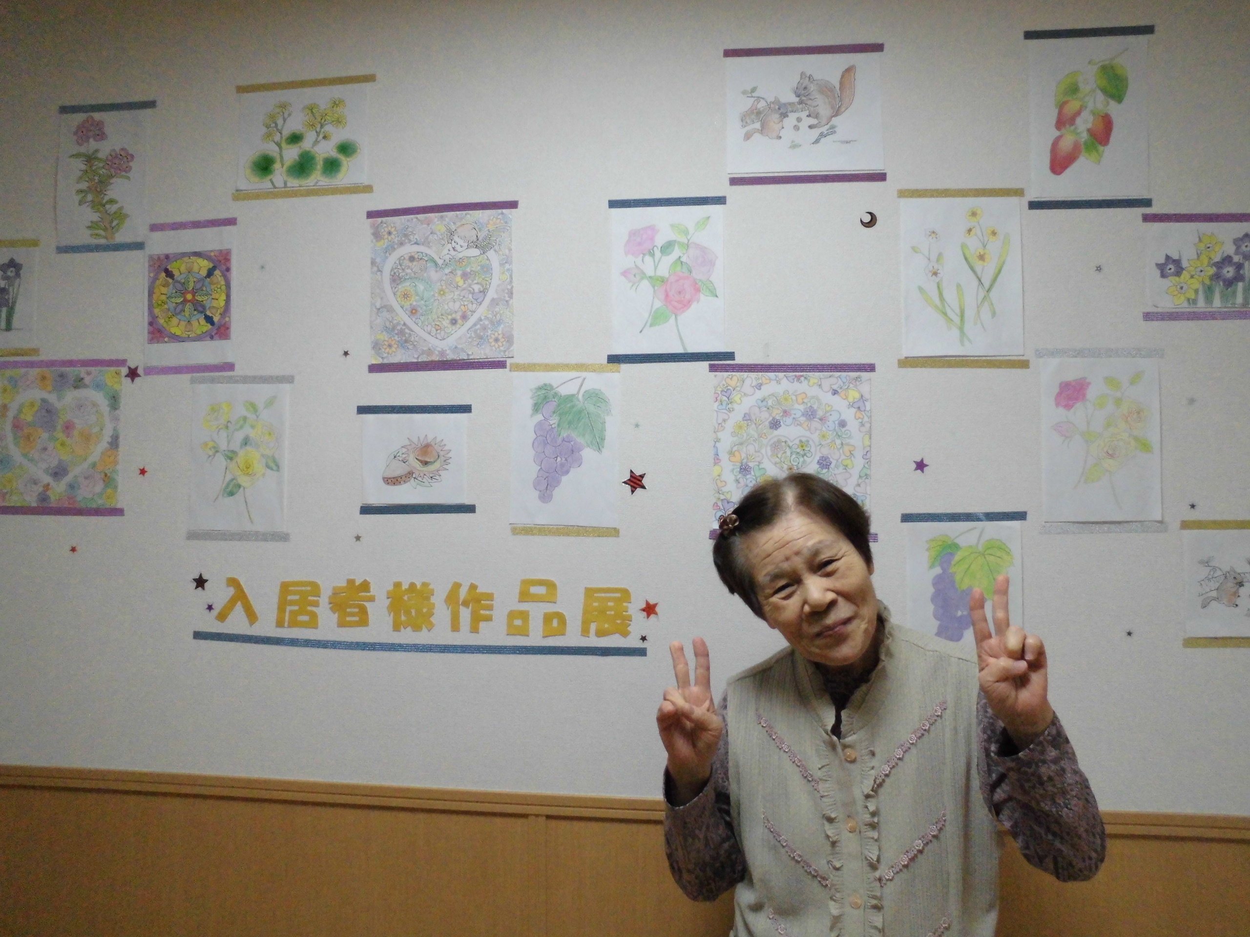 今回の飾りは芸術の秋ということで入居者様の作品展を開催させて頂いております(^^)