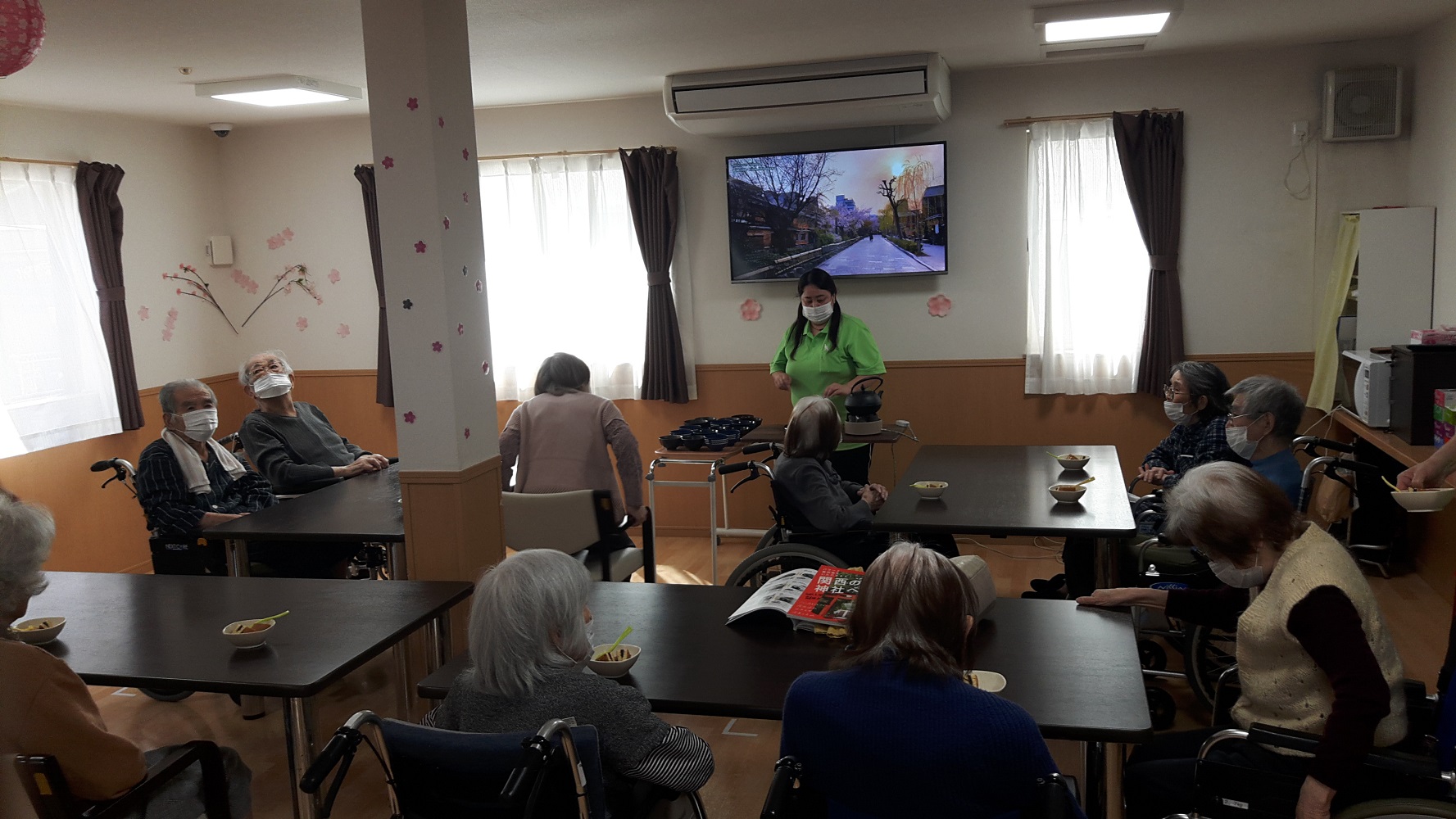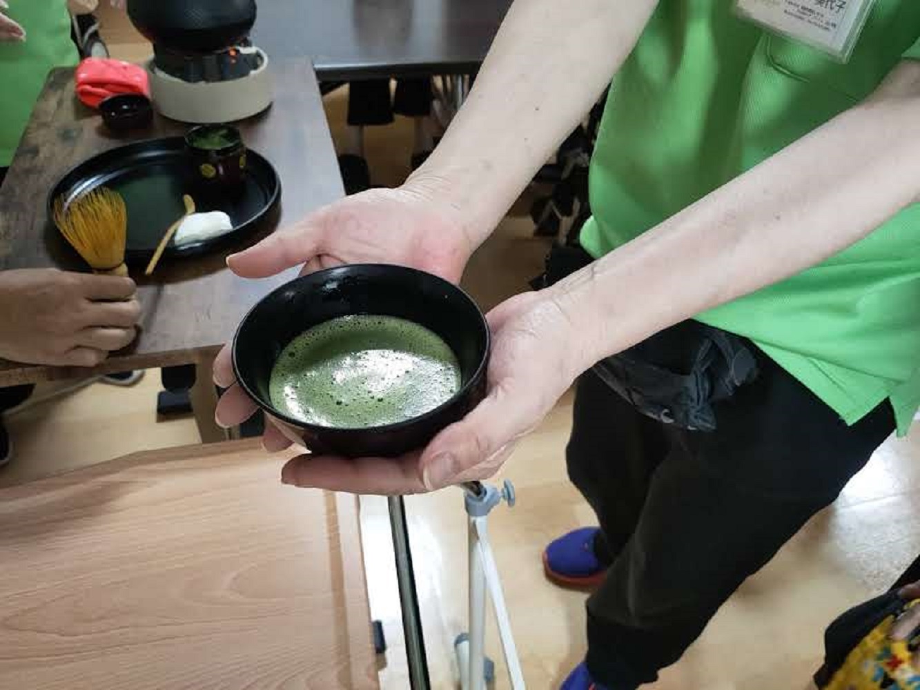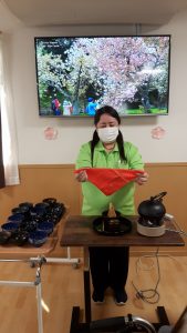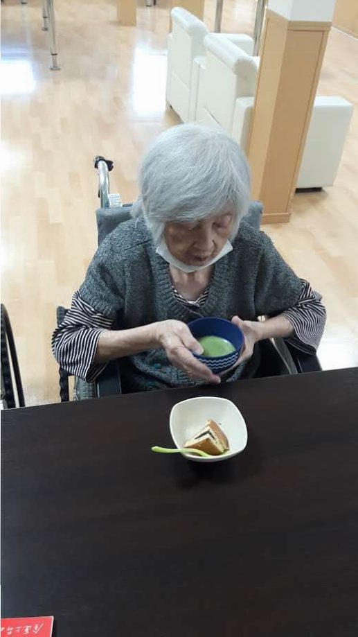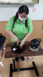 以前にも行わせて頂いた、抹茶レクを再びご利用者様の要望に応えて行わせて頂きました。