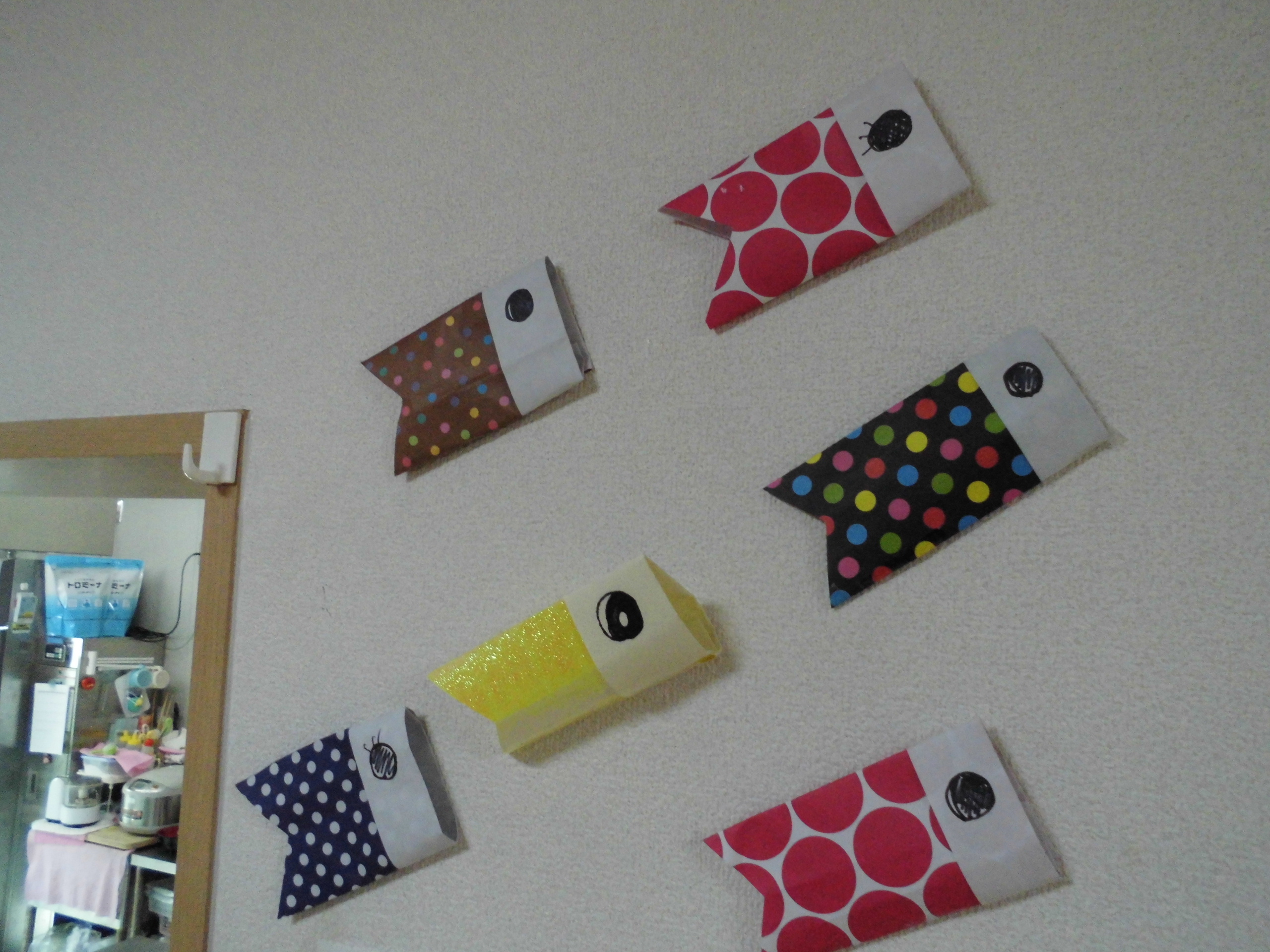 皆様に作っていただいたこいのぼりもカワイクできましたね!
