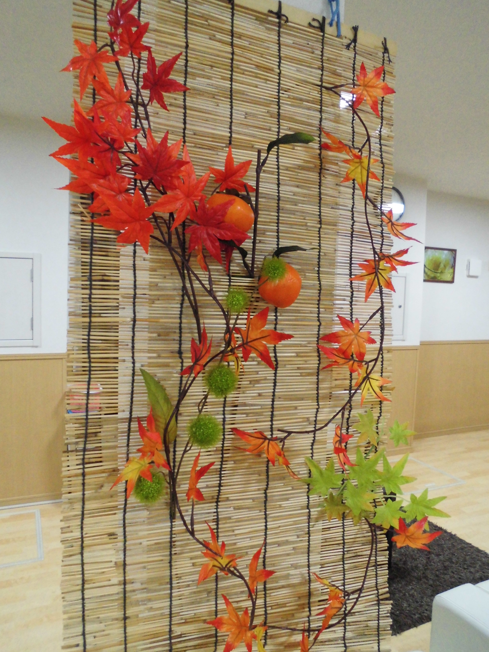 入居者様と作った飾りも♪          食堂は紅葉いっぱいです(*^^*)
