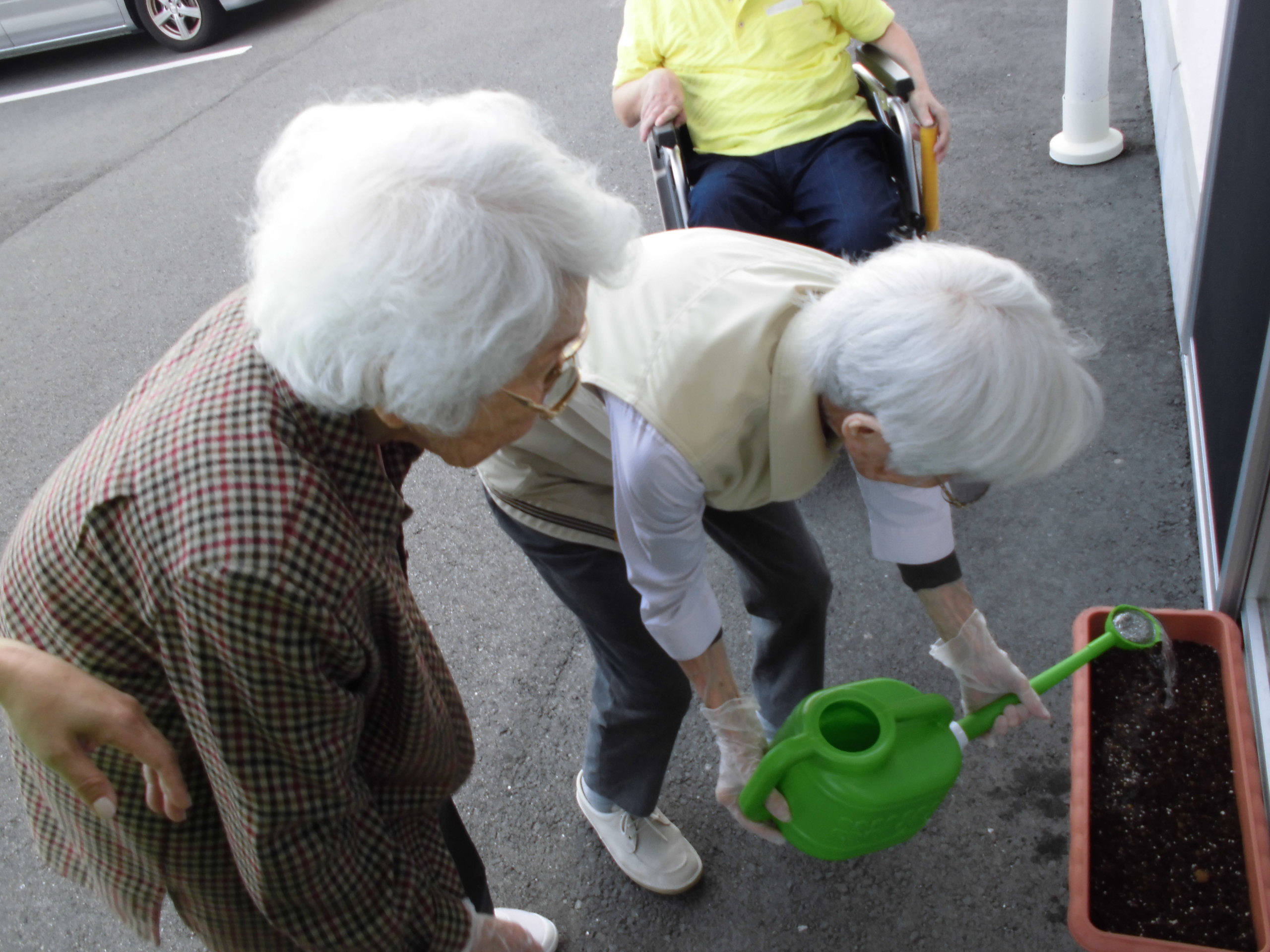 水撒きを譲り合っておられたのですね( *´艸`)