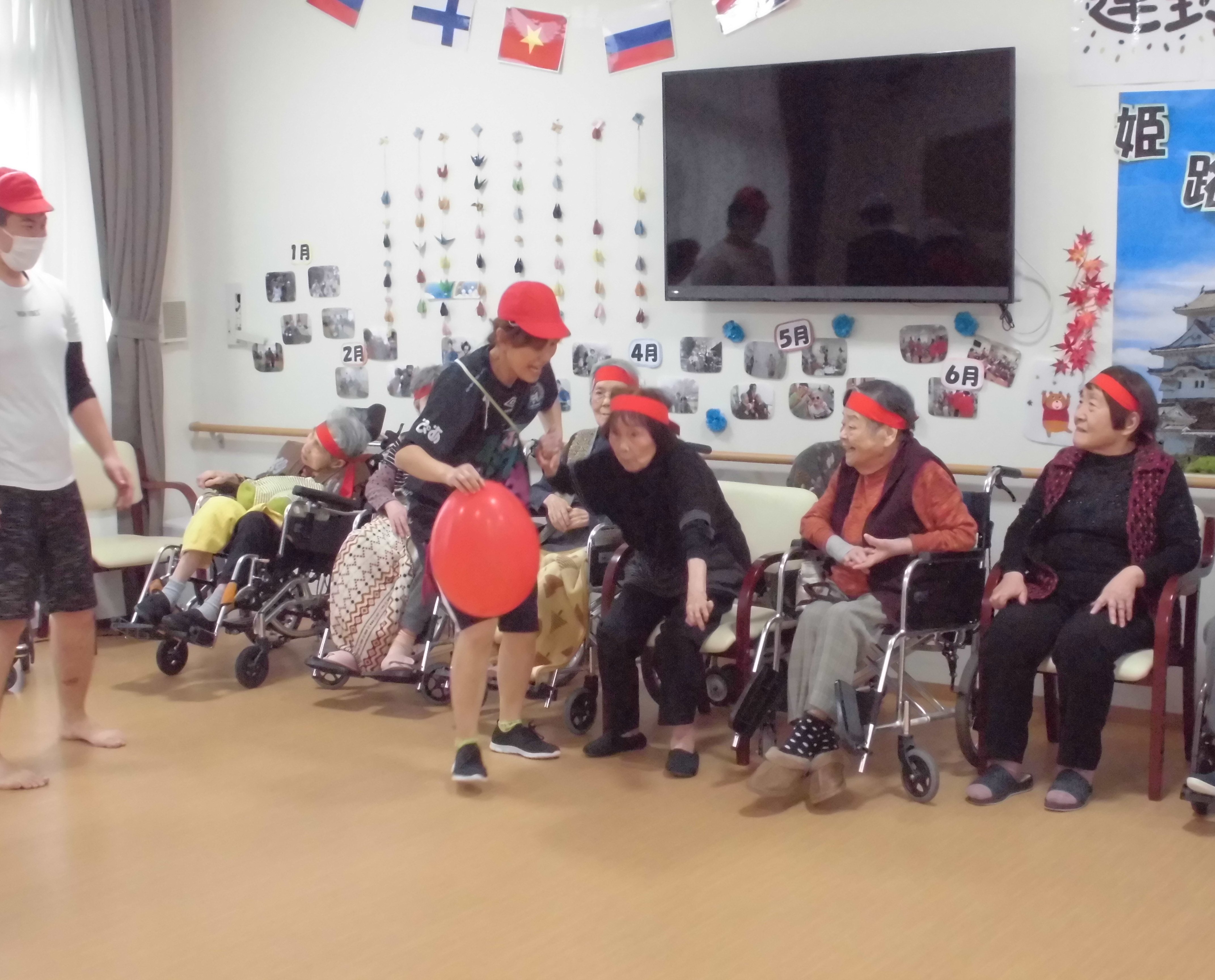 大玉の風船を順番に回していきます(/・ω・)/○