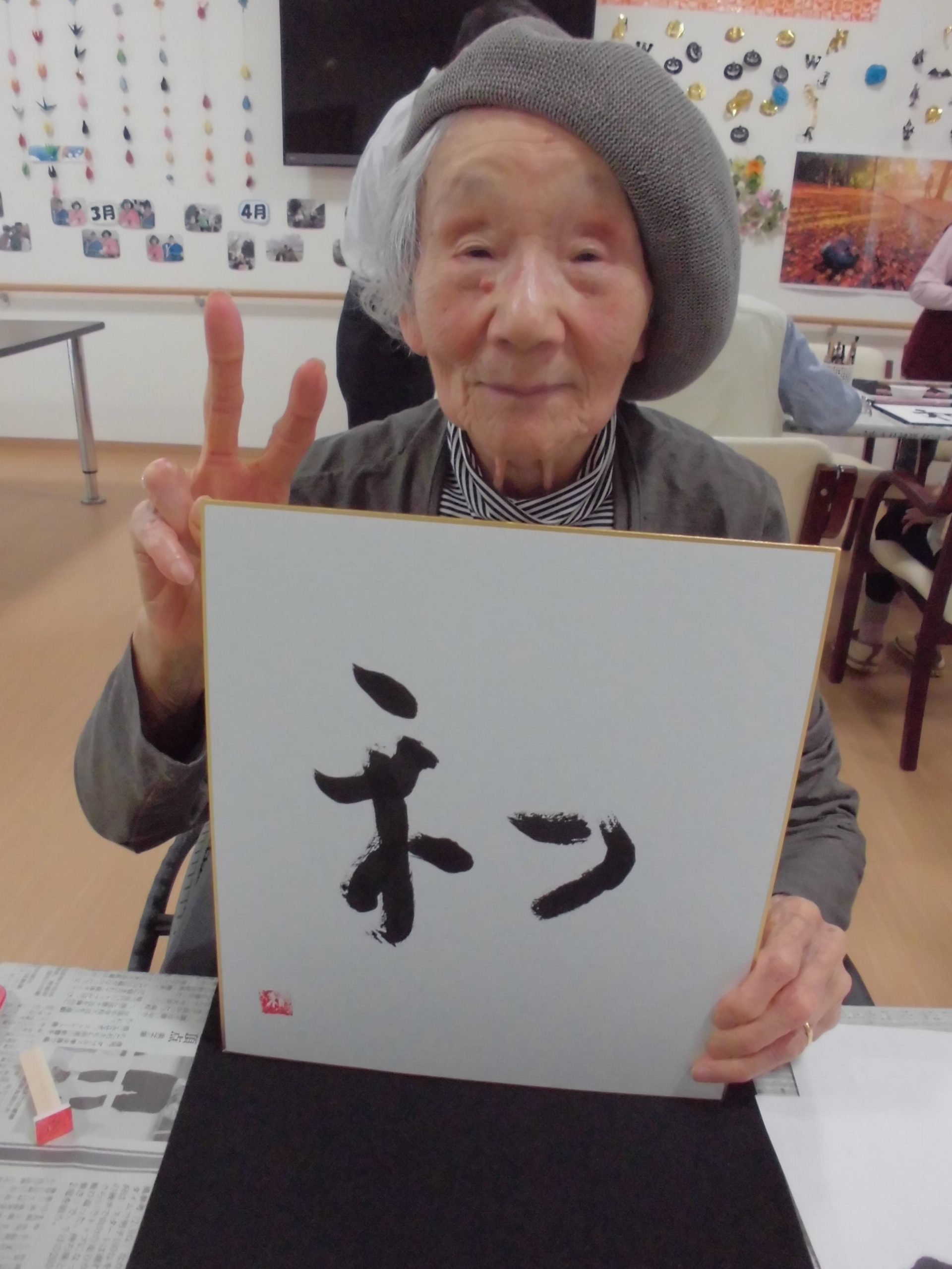 色紙に清書し、名前のハンコも押しました\(^o^)/