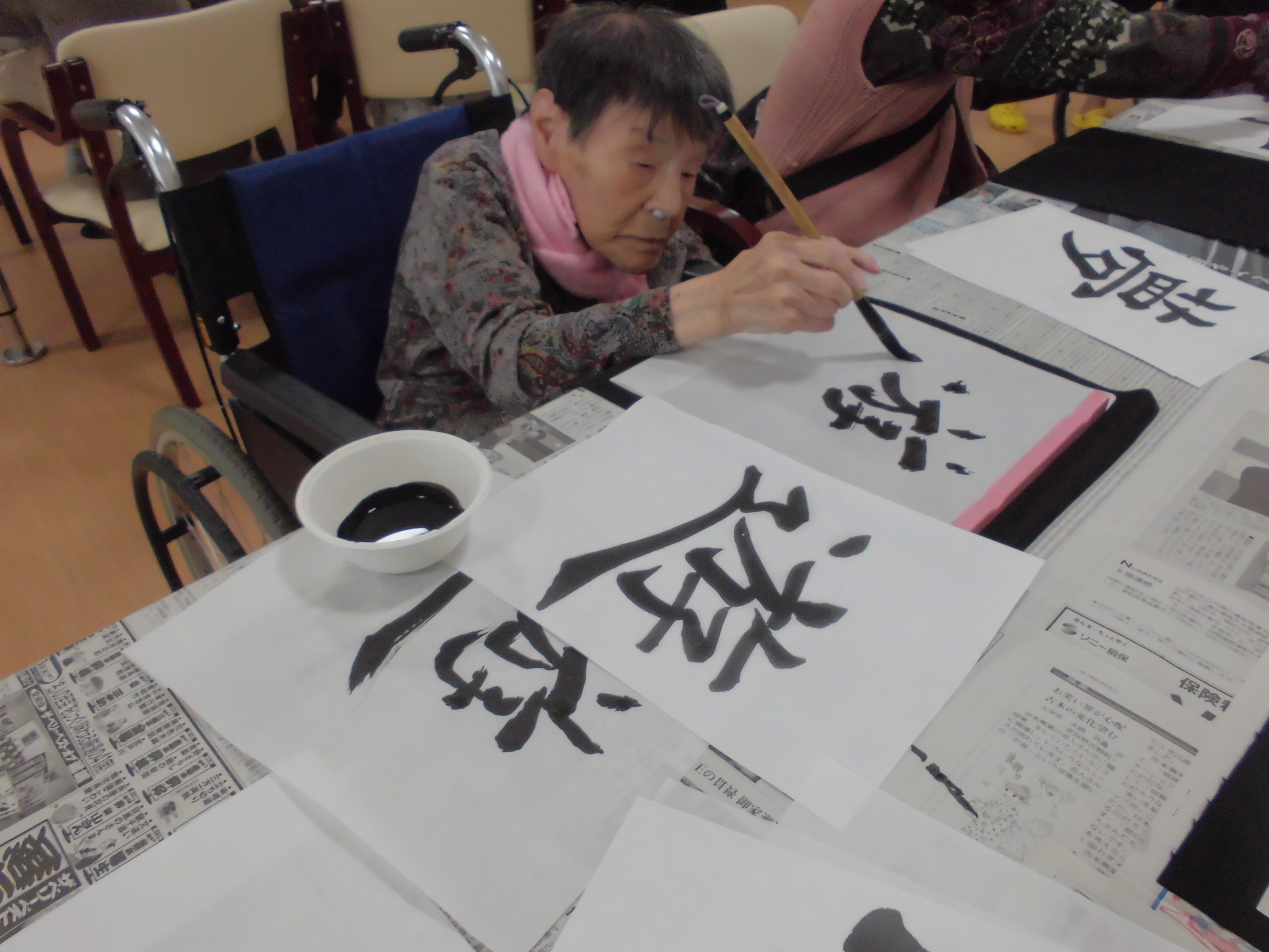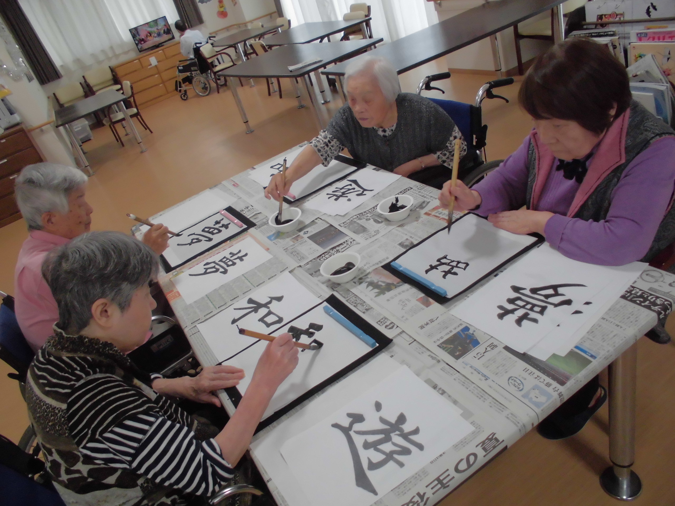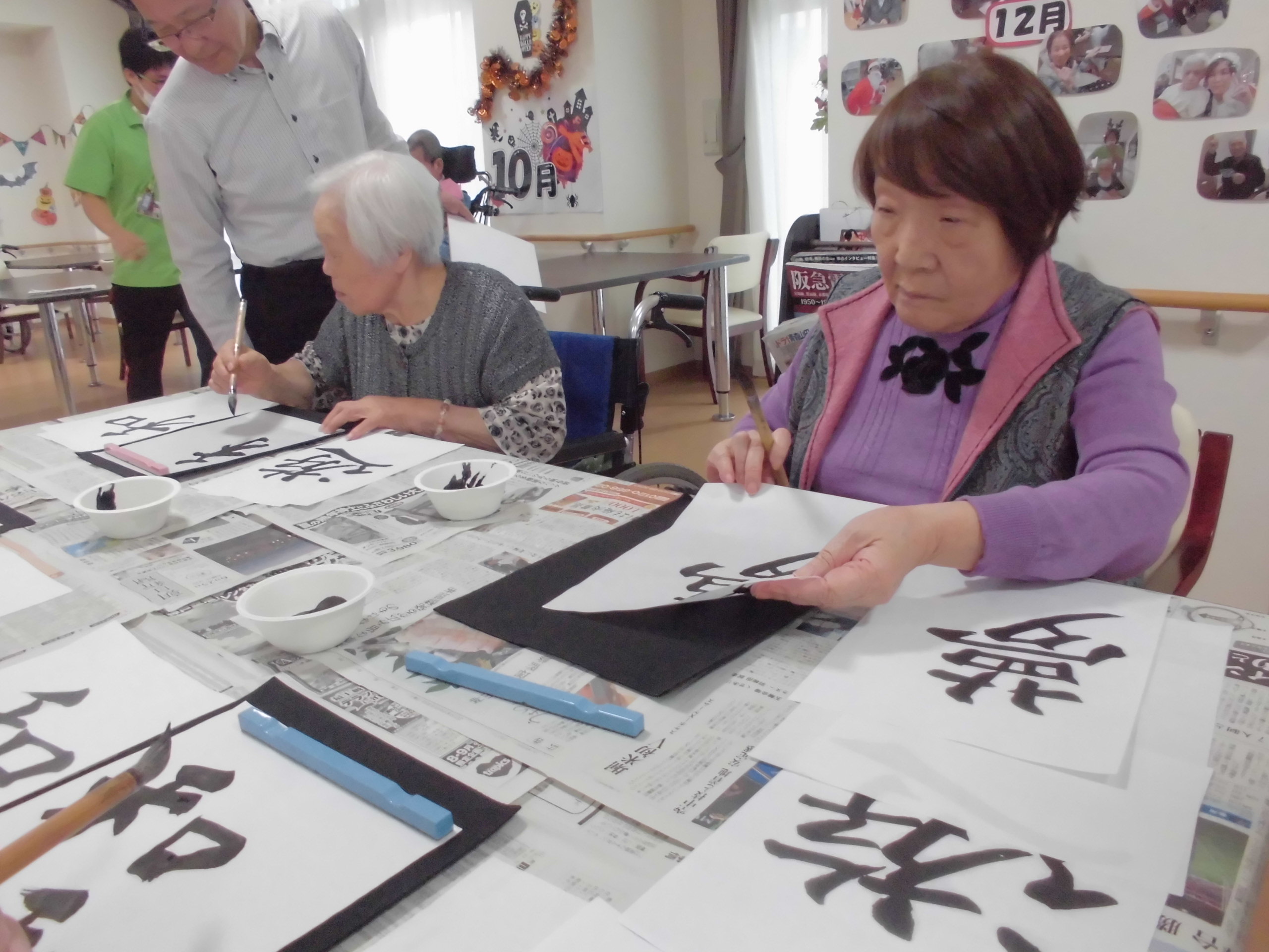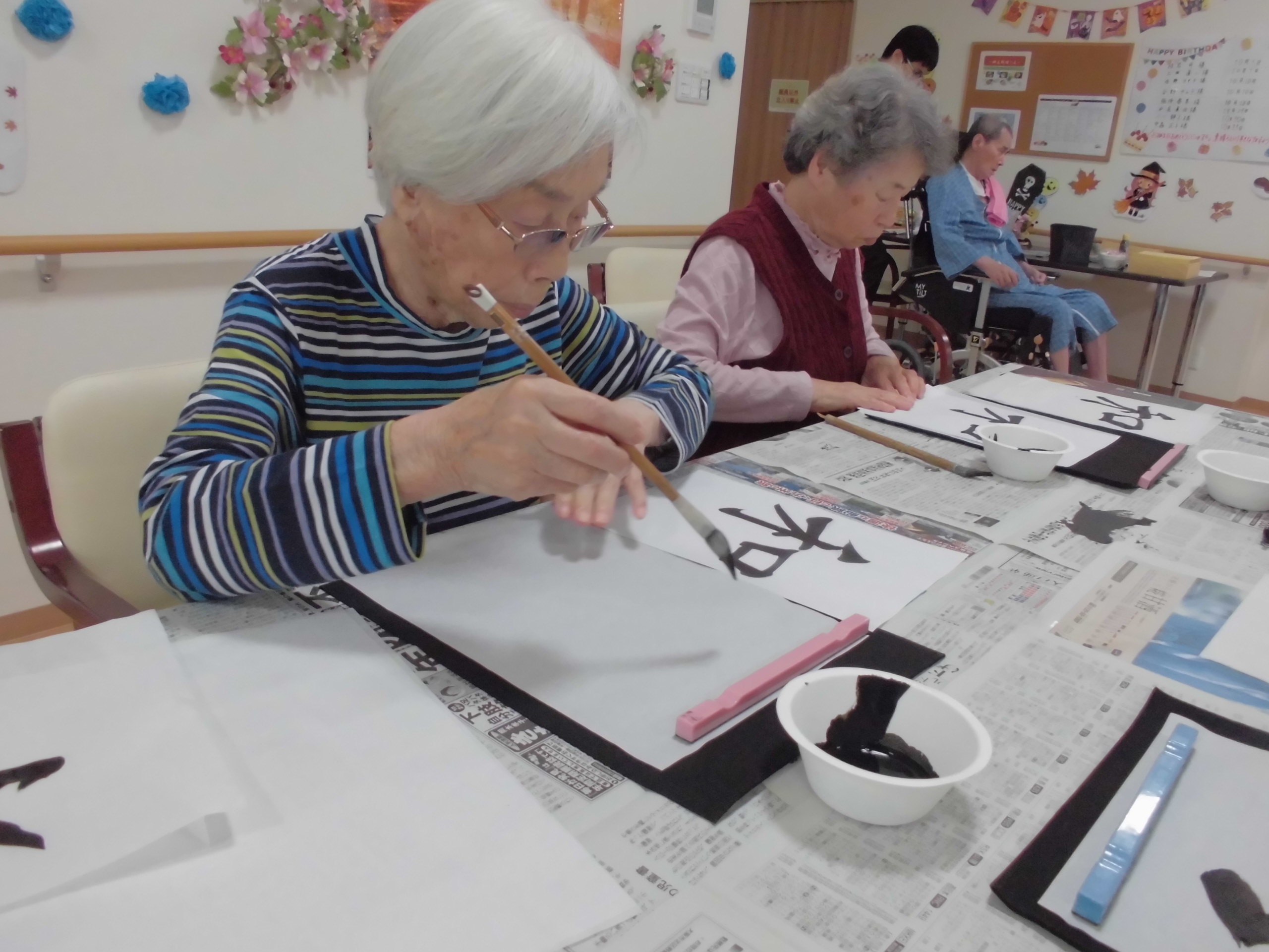 皆様、とても真剣な表情で半紙と向き合っております…