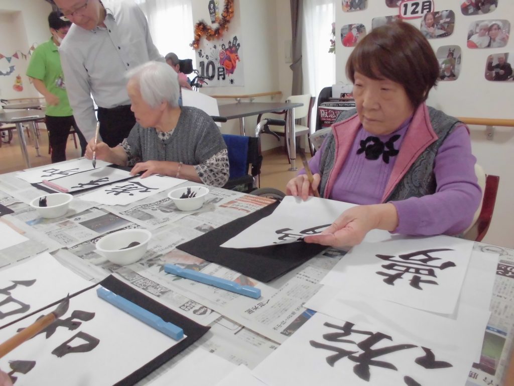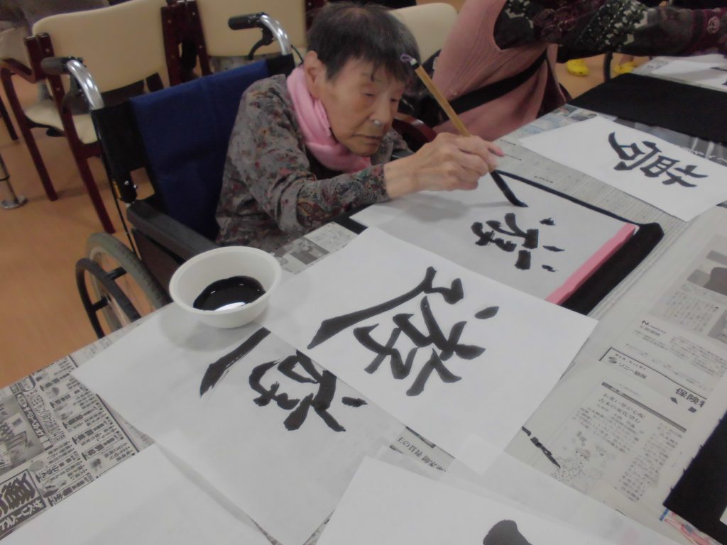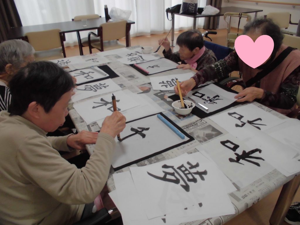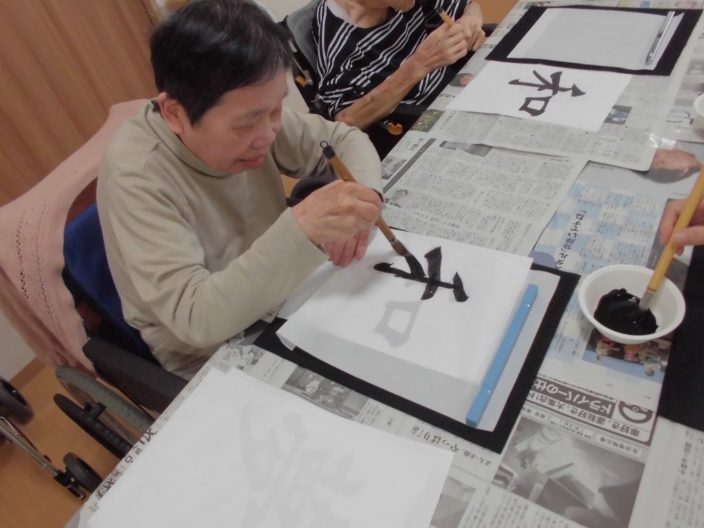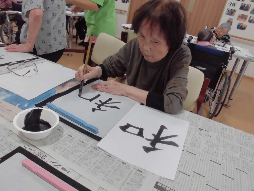 先週のリハビリ体操の後に、書道レクを行いました☆