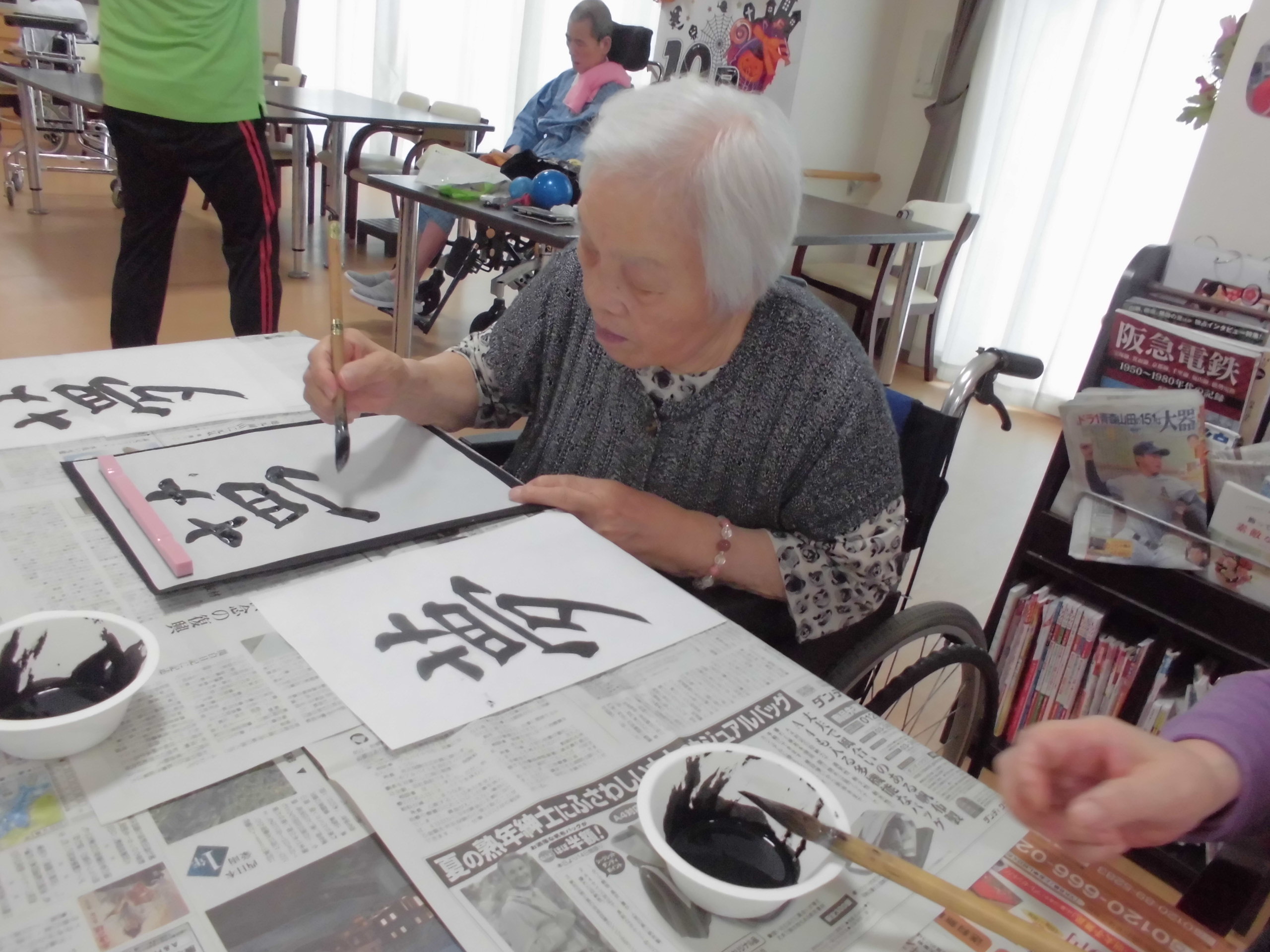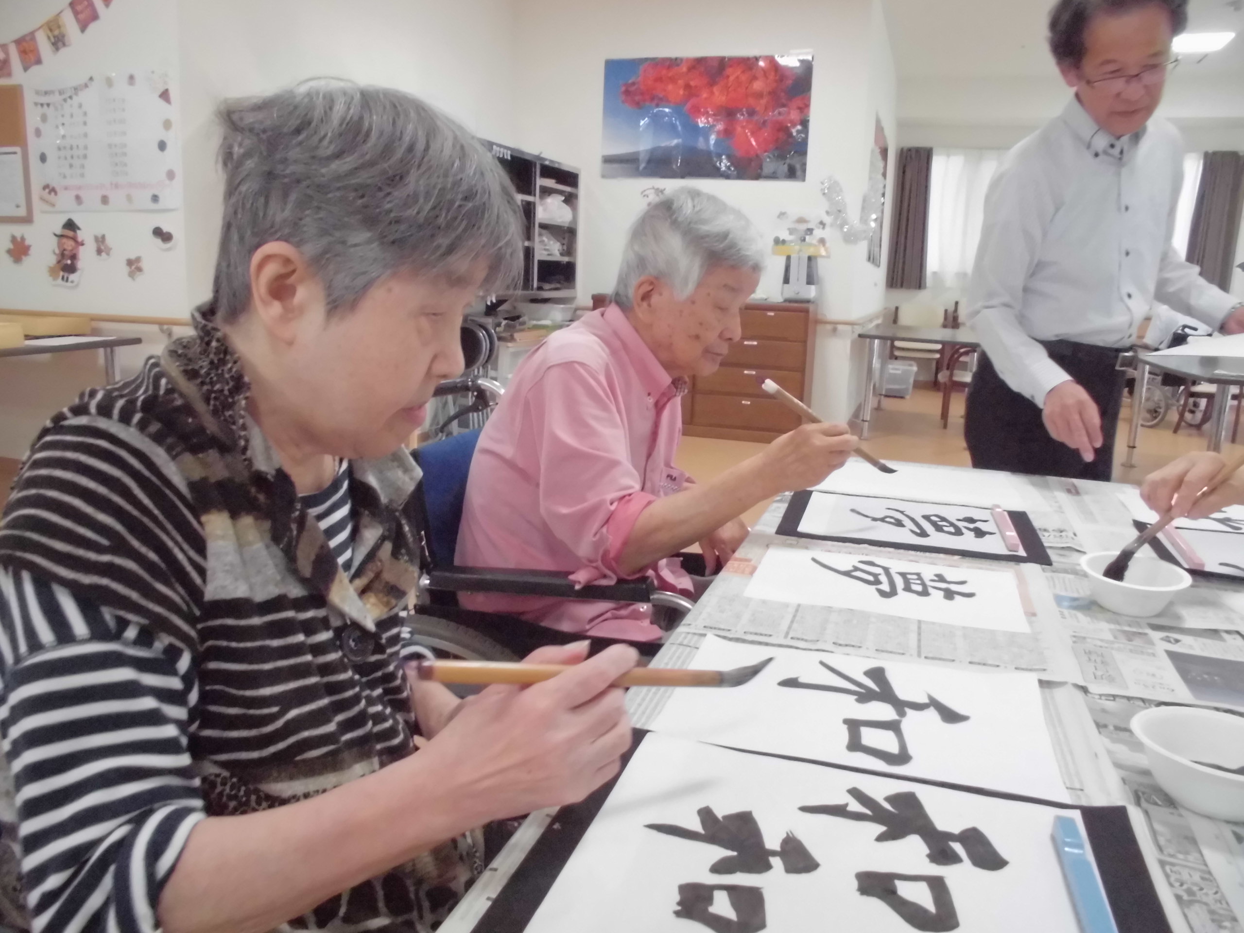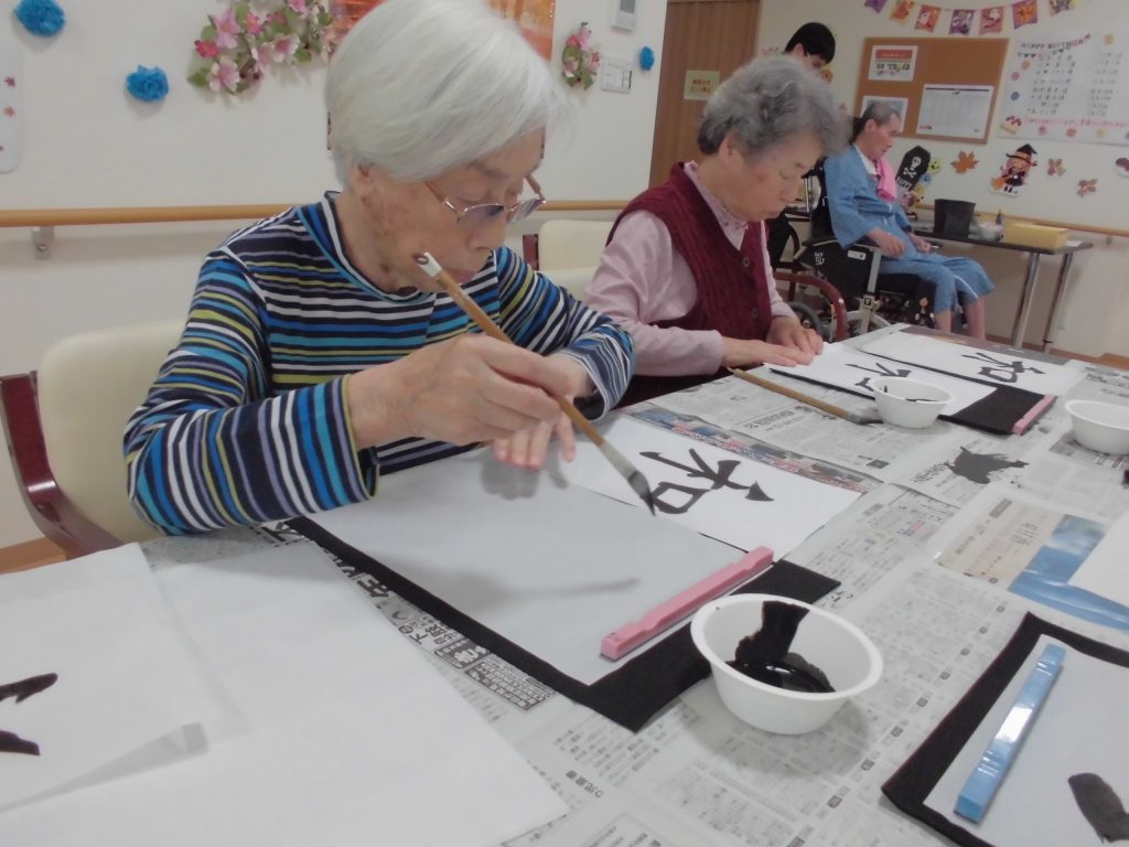 先週のリハビリ体操の後に、書道レクを行いました☆