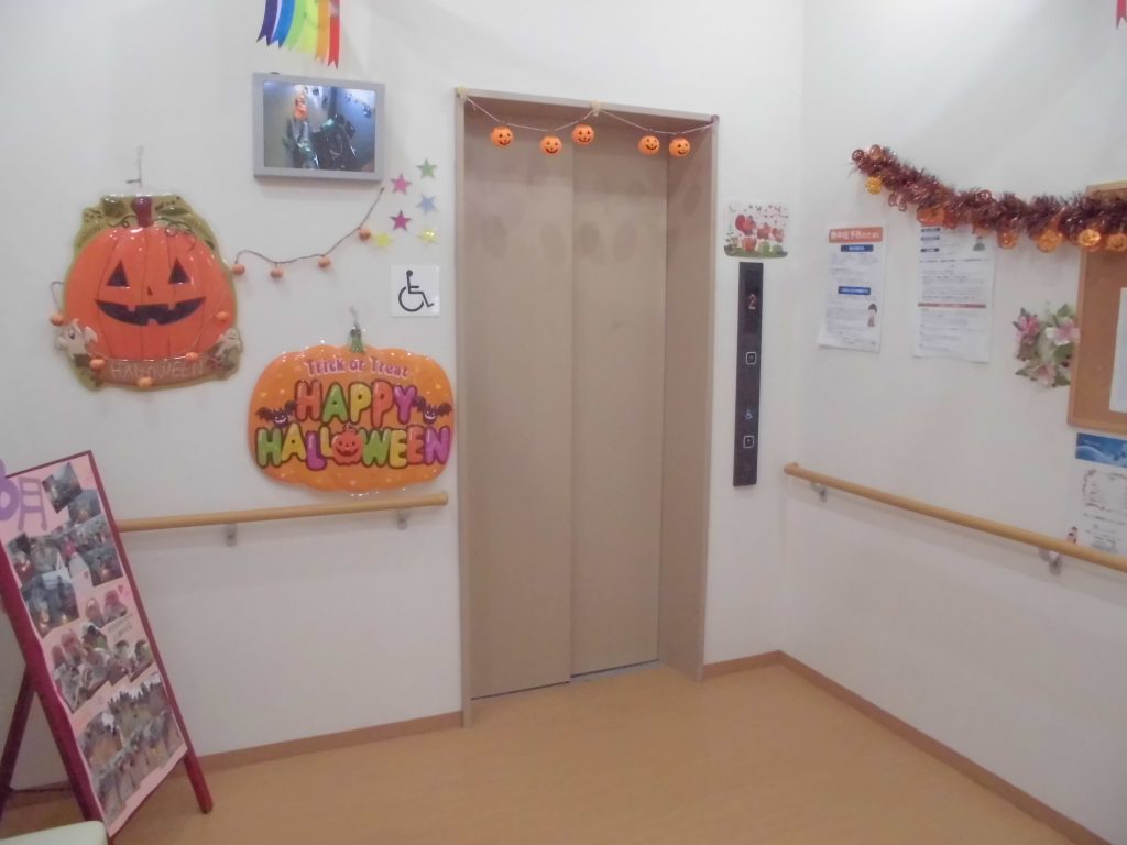 エレベーター前の中も、きれいに飾りつけしています(^_-)-☆