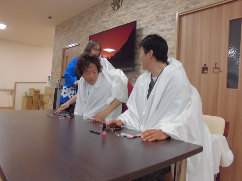 2チームの代表者がお化粧をします(^^)v