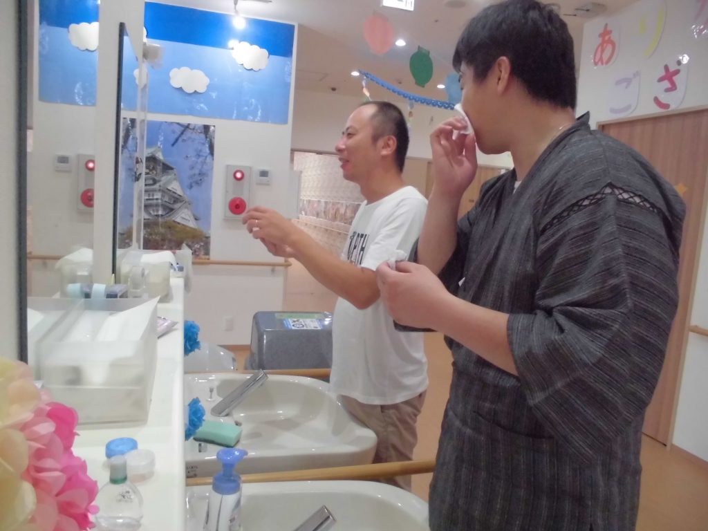 縁日終了後は、ふたりで化粧を仲良く落としていました(^^♪