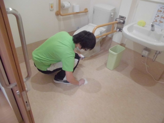トイレ掃除中のYスタッフ・・・