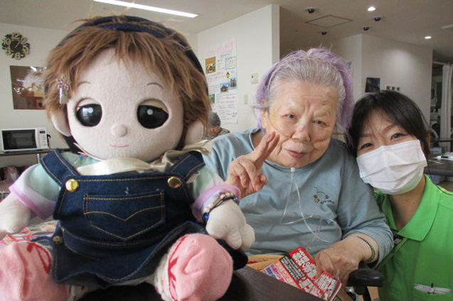 食堂にてお人形さんとお喋りしているT様を発見★