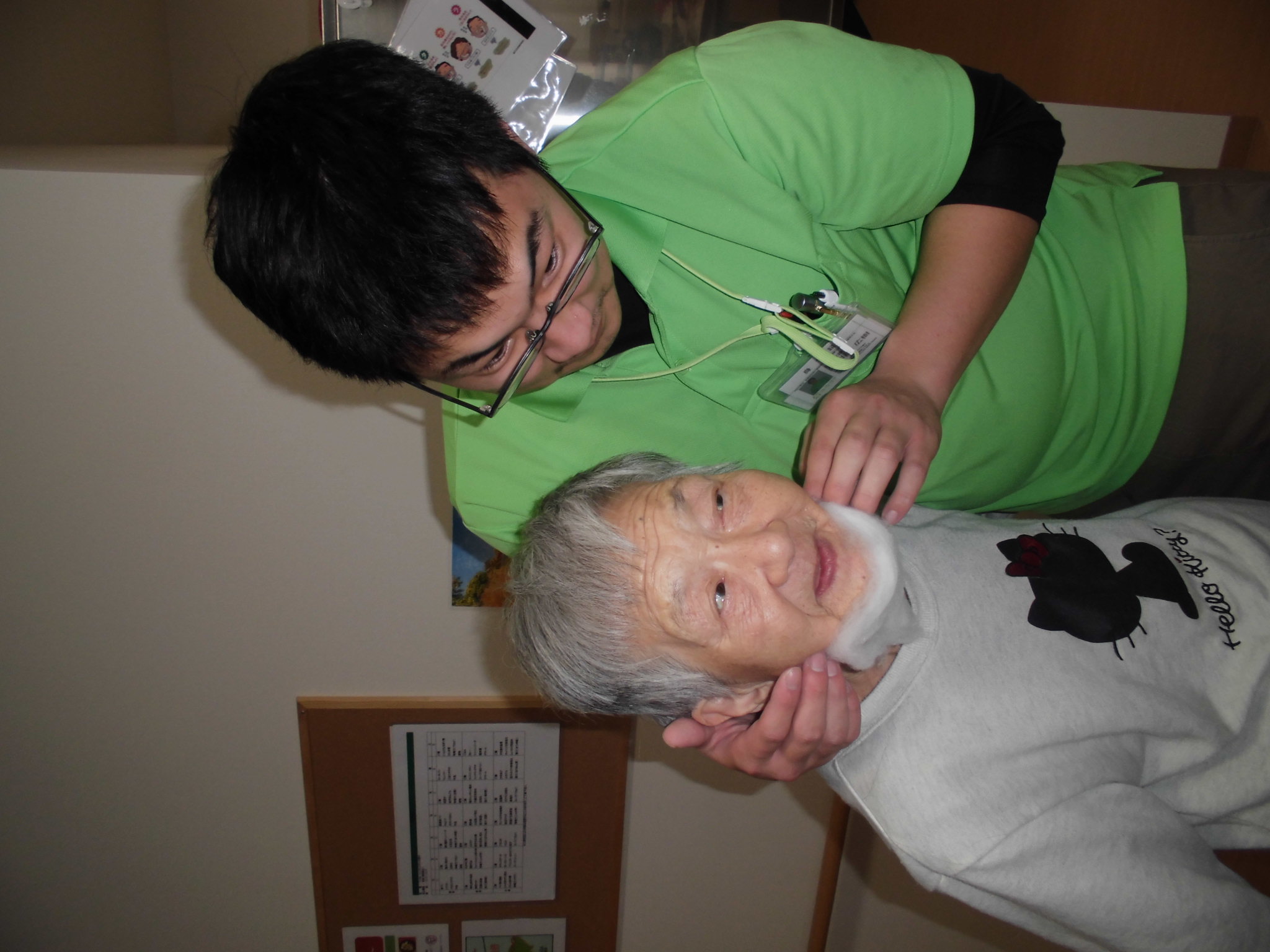 K職員、ご入居者様にお鬚を…(”Д”)