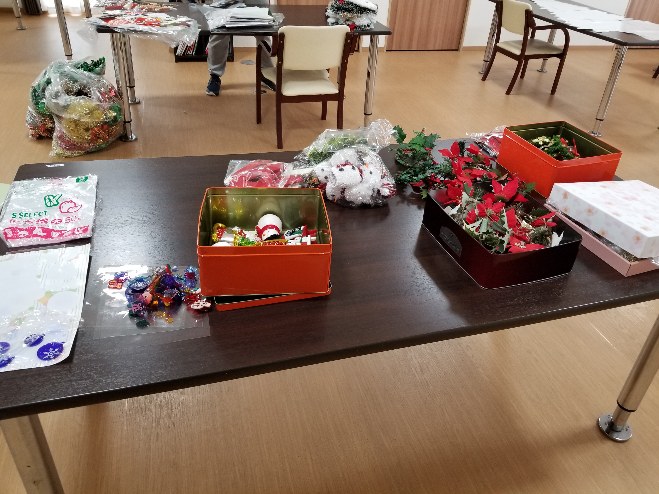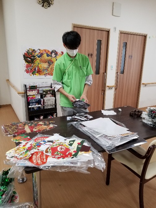 Iリーダーが一生懸命に飾りつけを