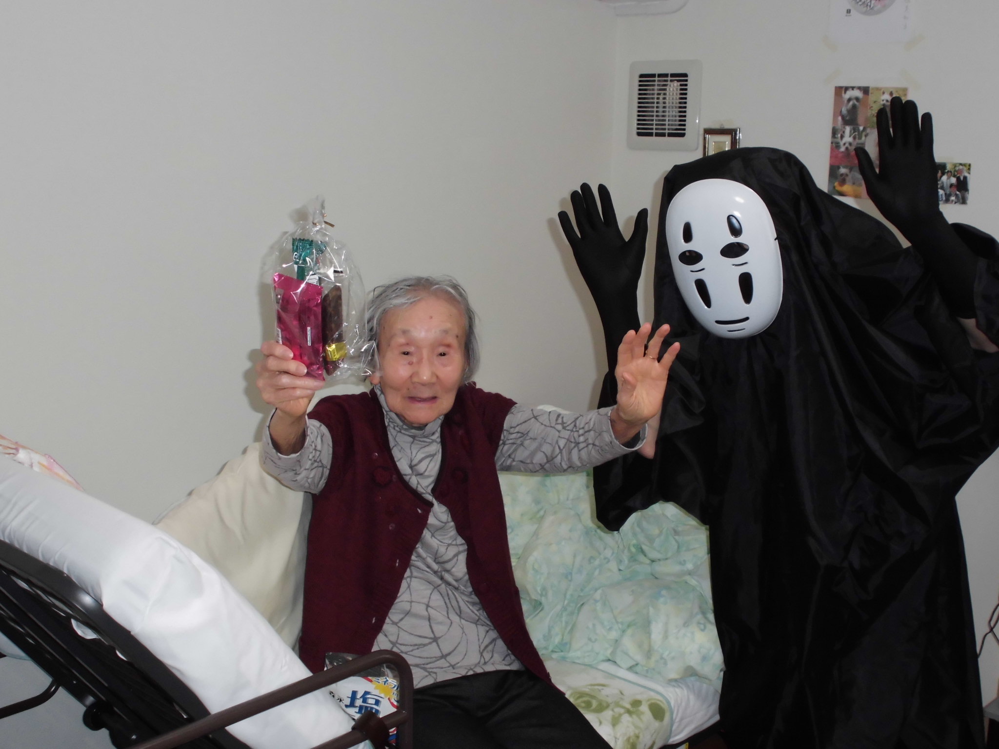 今日は、ハロウィンのイベントです!4Fから順に各居室を回ります|ω・)