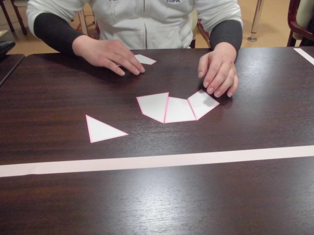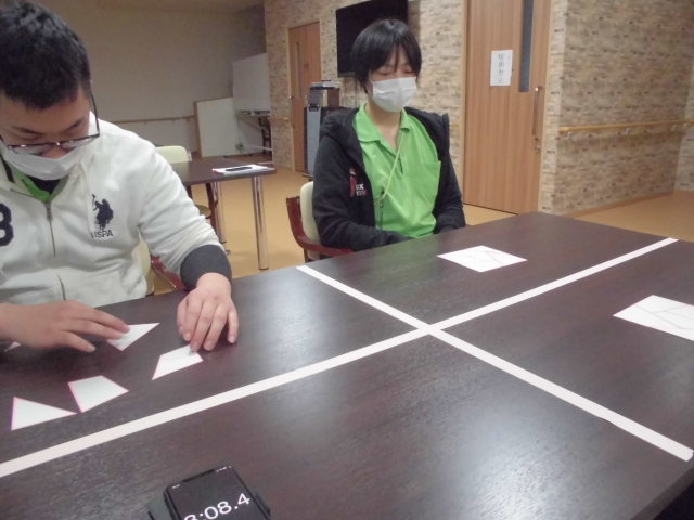 揃えて2回目は声をかけながら図形を揃える。