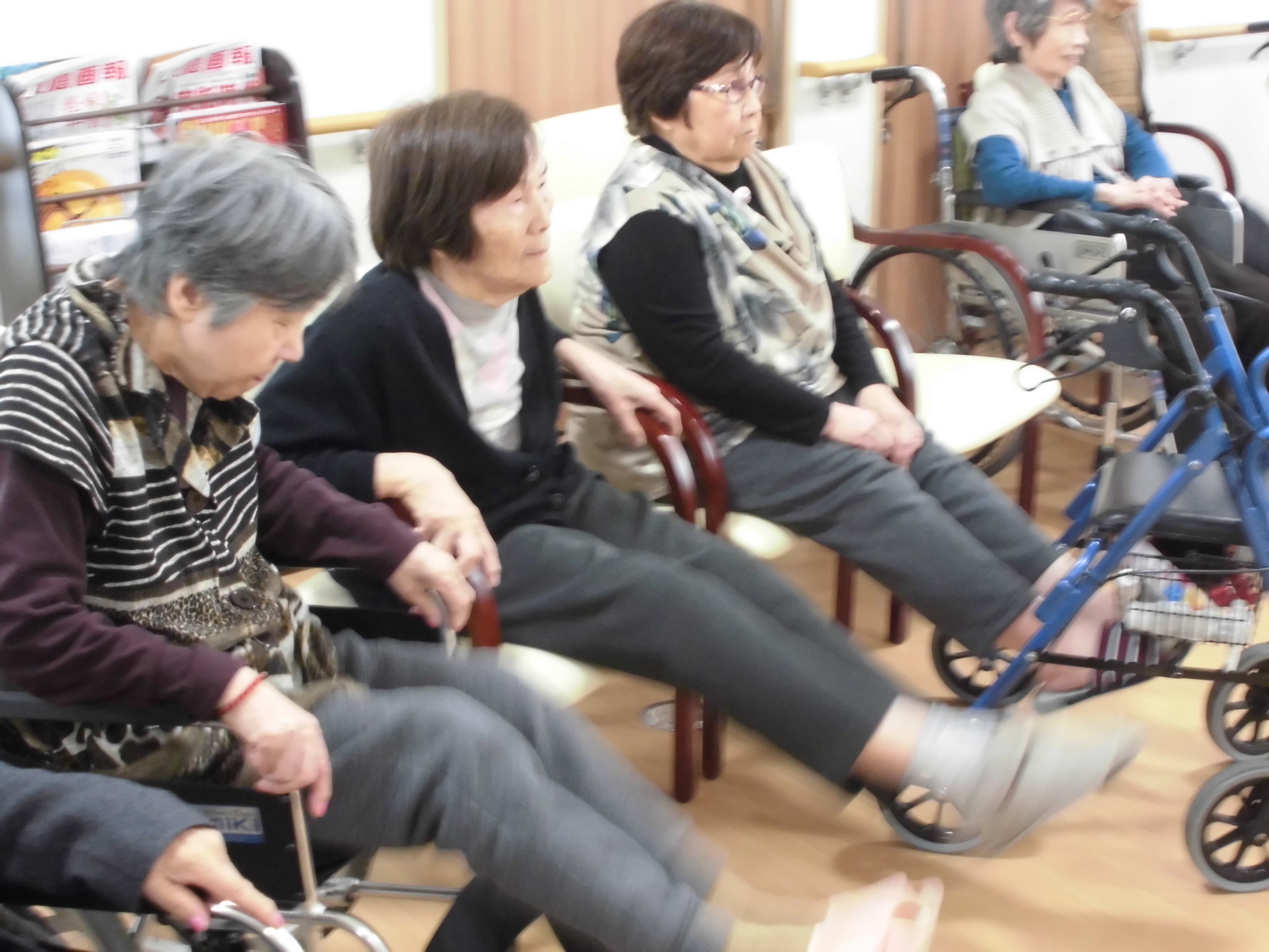 椅子に座りながら脚上げ運動~!!!