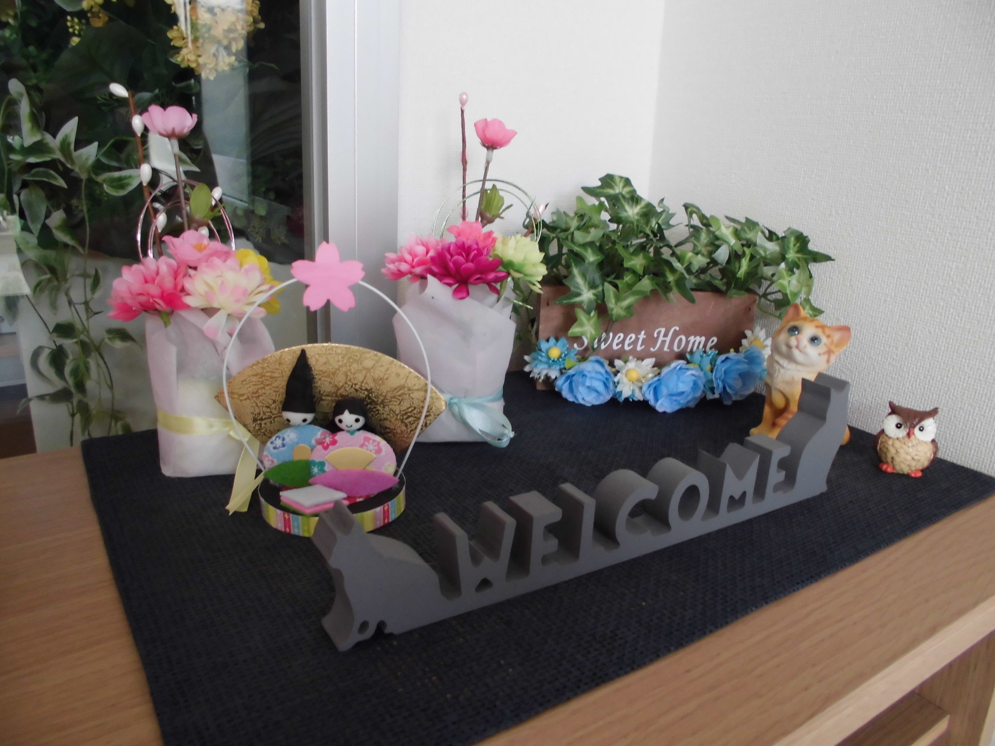 玄関先の飾りつけもお雛様を飾ってみました☺