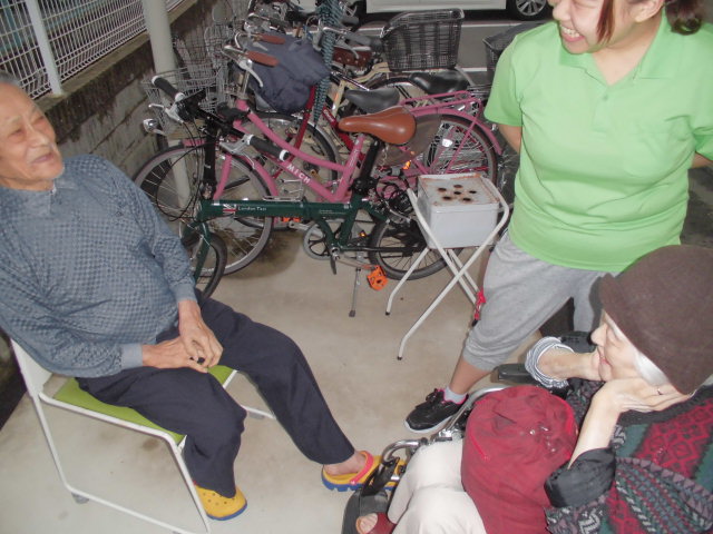 今日も過ごしやすい日でした。入居者が「外の空気がすいたい」とのことで皆様で外に行きました(^_-)-☆