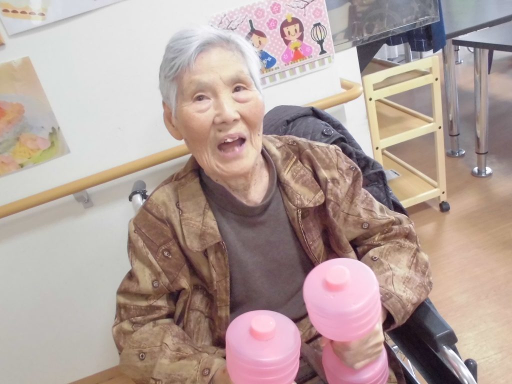 水のダンベルを持って・・・体操です☆