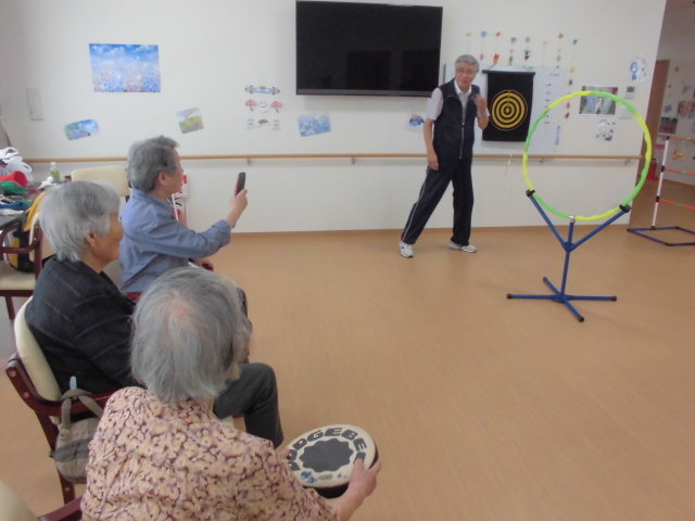 今度はフリスビーを投げて・・・