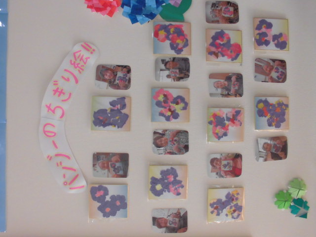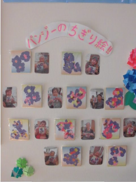 玄関前に『パンジーのちぎり絵』を