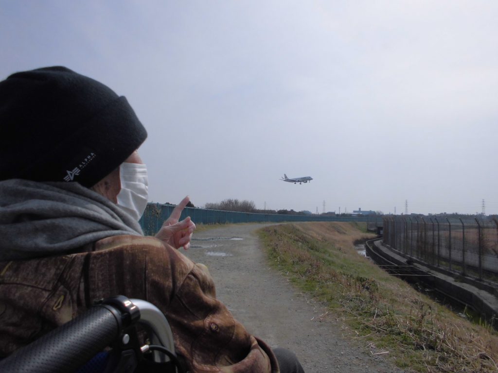 じっと飛行機を見つめておられるT様。