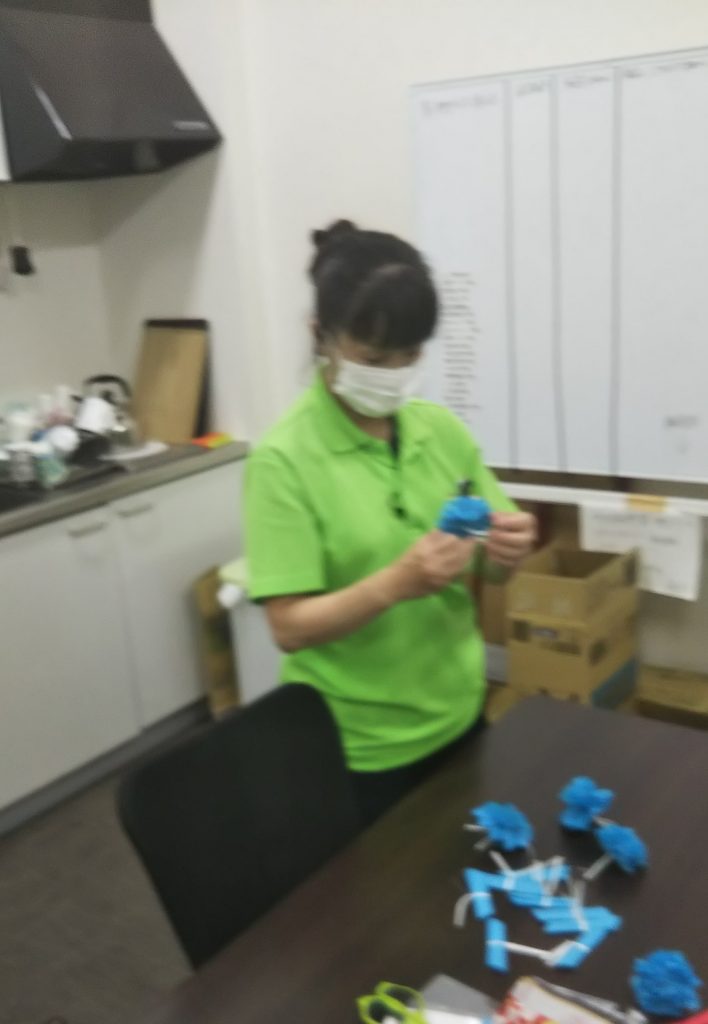 実は職員さんたちは次回のレクレーション用のお花を作ってくれていました(‘◇’)ゞ