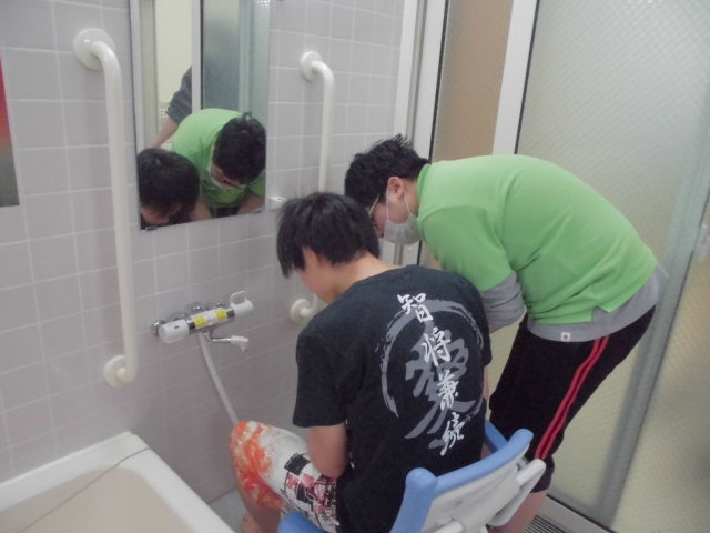 同時進行でお風呂場では洗髪介助を!!!