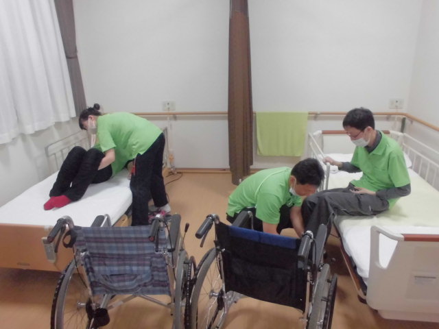 ベッドから車いすへの移乗・・・