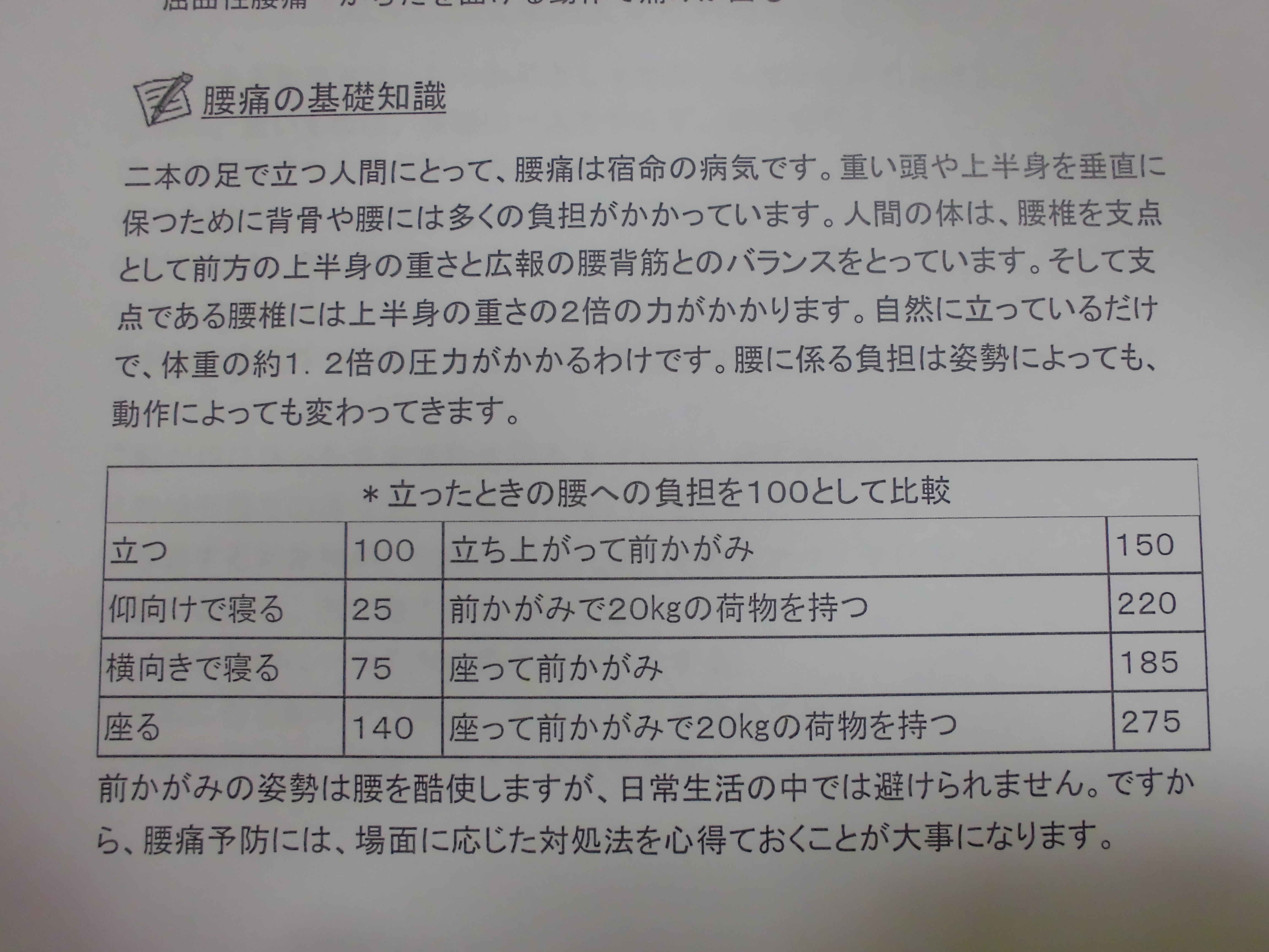など意識して少しでも腰に負担をかけず