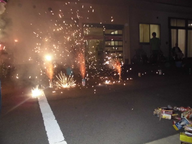 噴き上げが終わってから手持ち花火をみんなでしました。