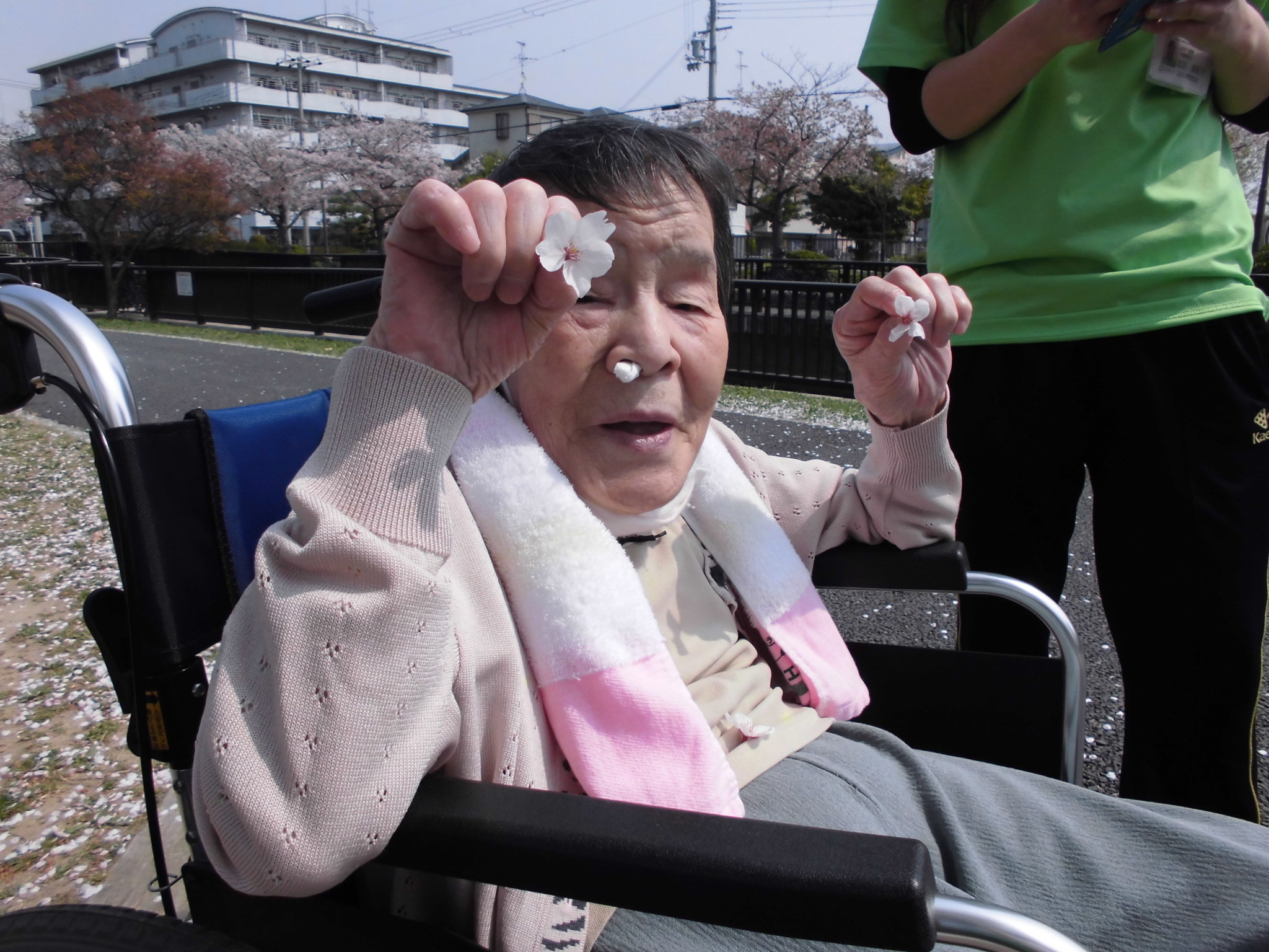 落ちていた桜の花びらを持って記念撮影!(^^)!