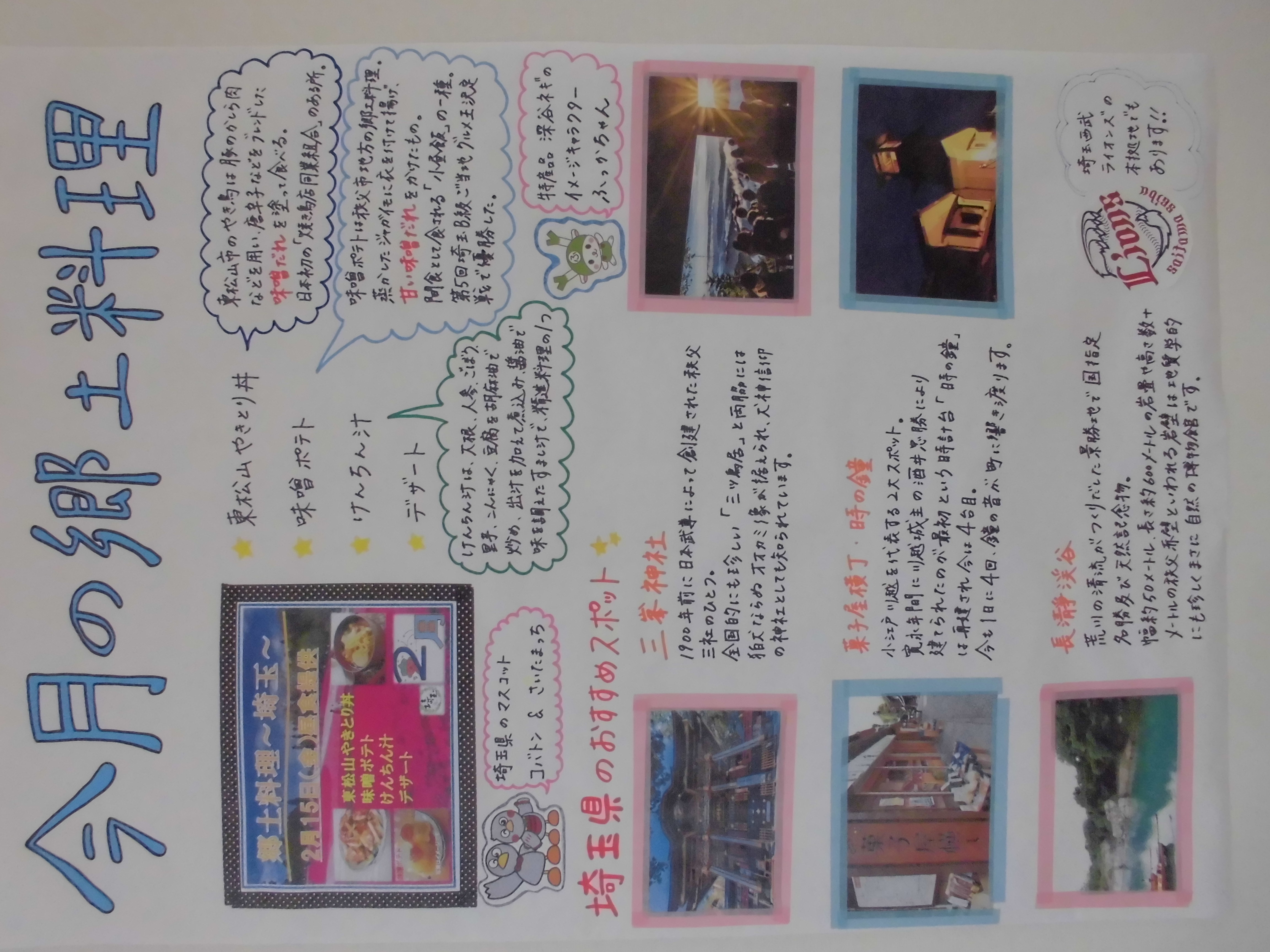 今月の郷土新聞は「埼玉です」施設の1Fに掲示していますのでご覧ください(^_-)-☆ Y職員の力作です。「今回は渾身の力作です!!」と笑顔で話をしてくれました(^_-)-☆