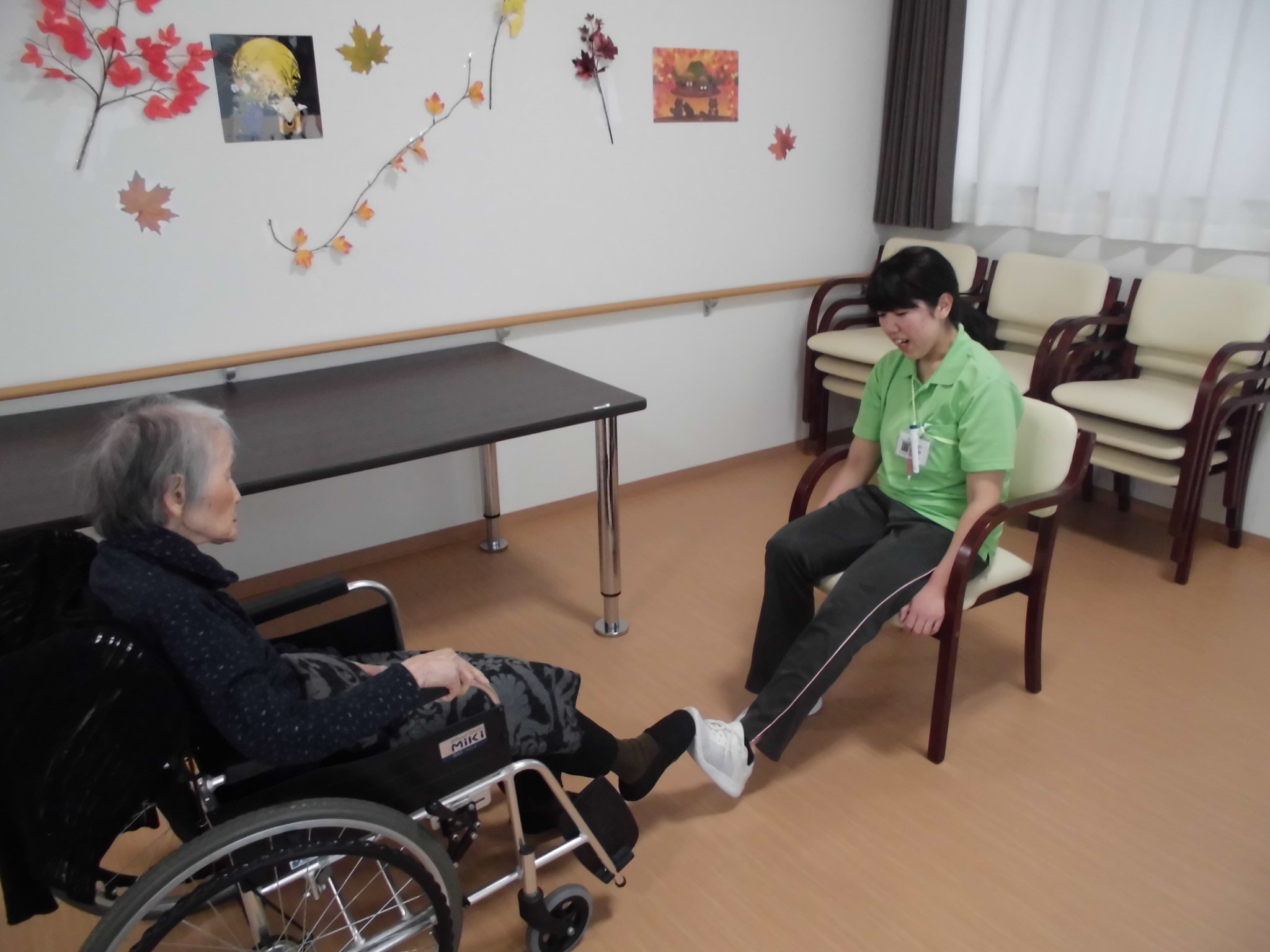 T様の運動をするI職員(*´▽`*)