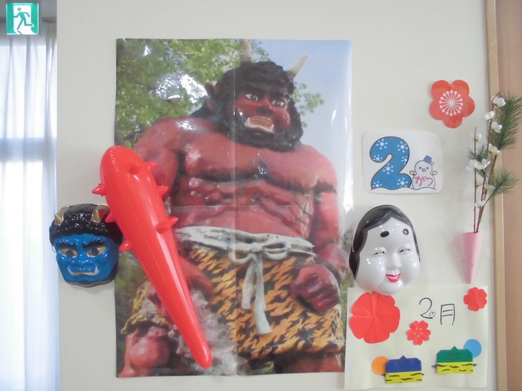 2月と言えば節分(もう過ぎましたが・・・)鬼さんが施設の中を席巻しています(^_-)-☆ かわいらしいおにさんがいっぱいいます(^_-)-☆