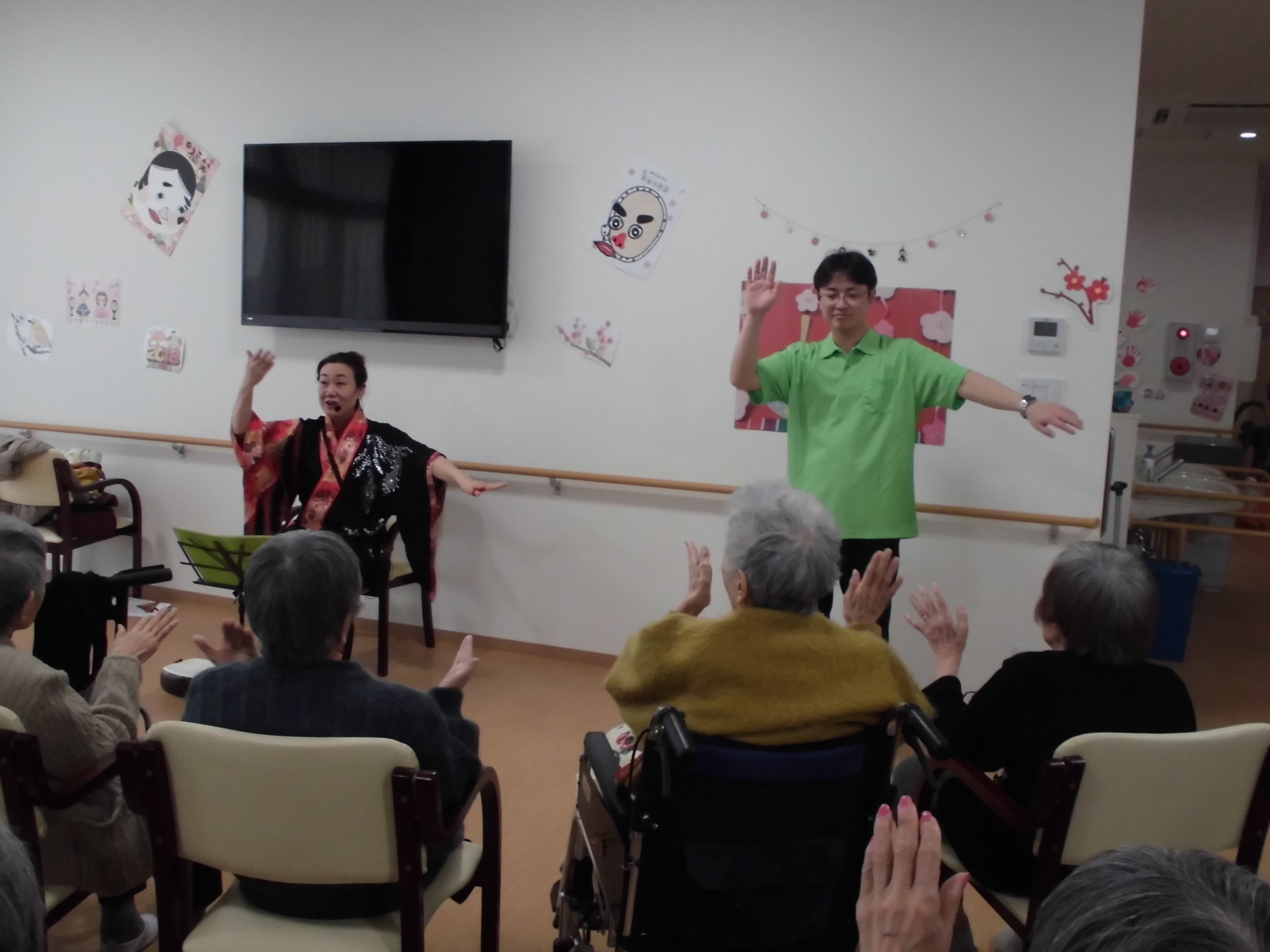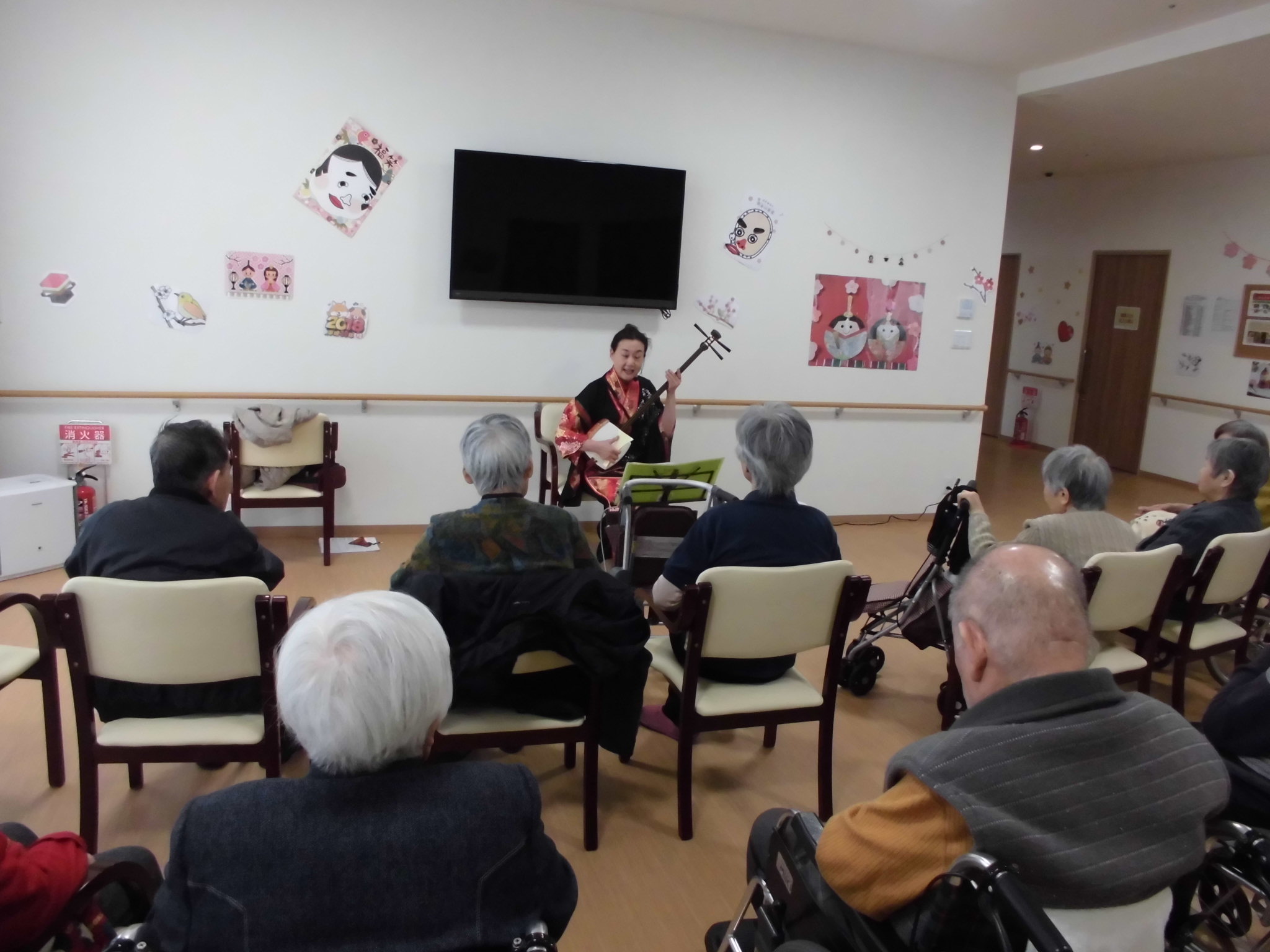 本日は外部から三味線の演奏をしてくださる方に