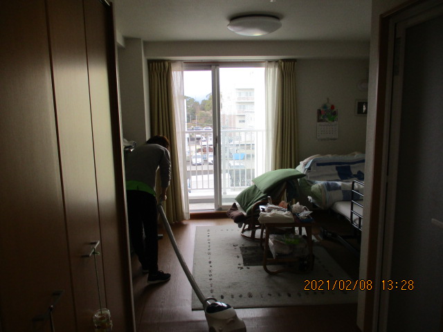 逆光で見えにくいですが、掃除機をかけているKスタッフ