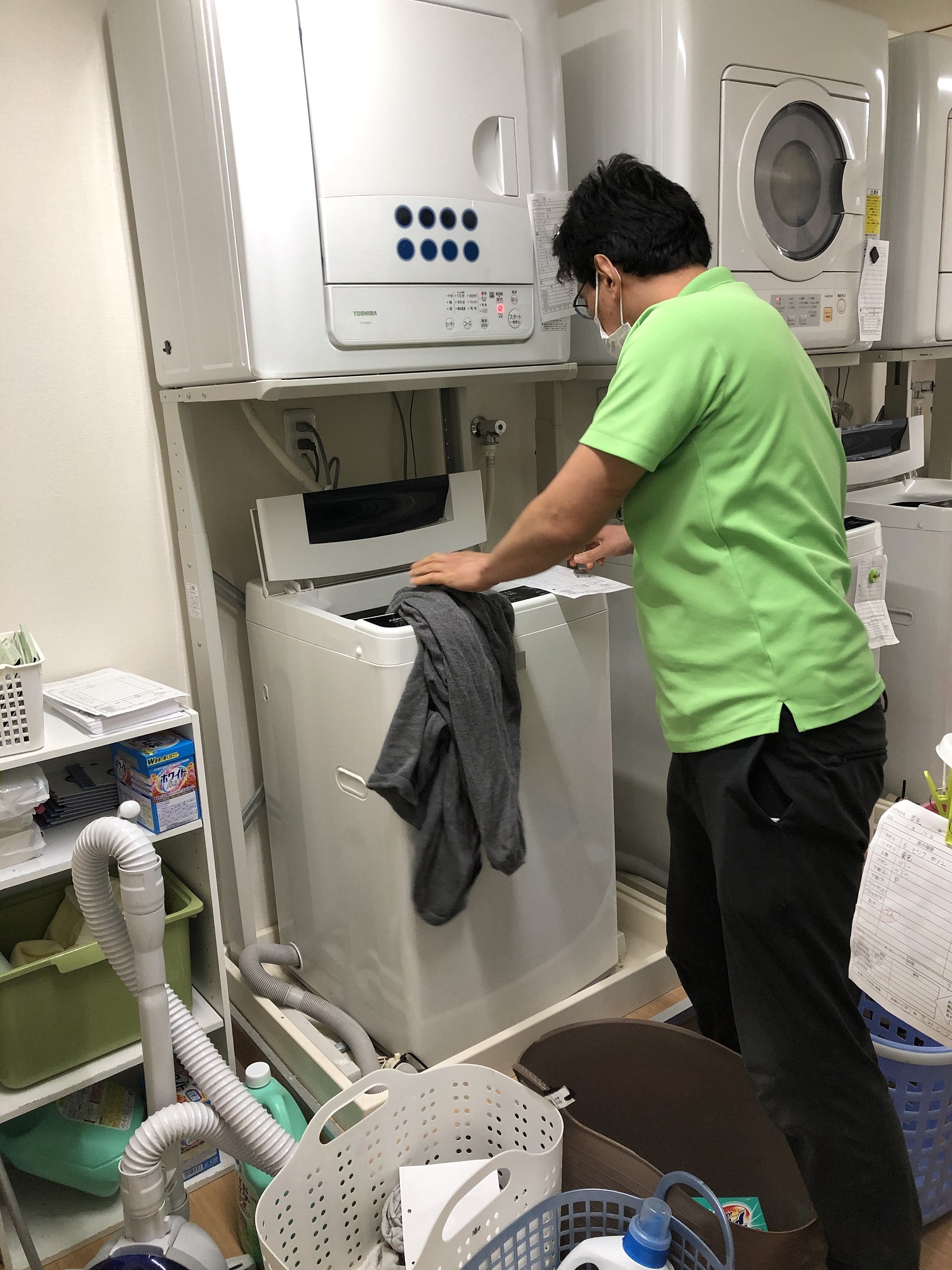 こちらは洗濯物をチェックしているKスタッフ
