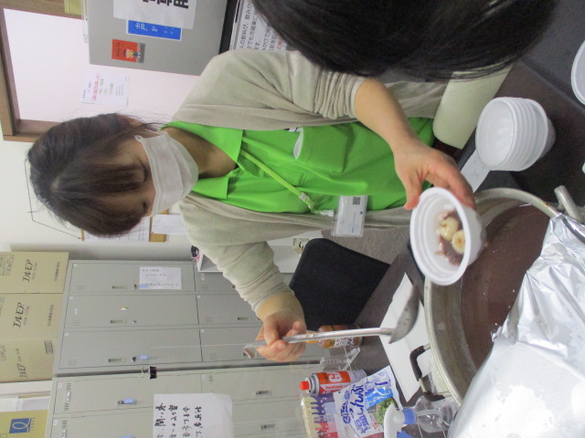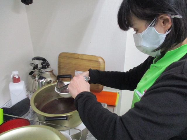 お昼ご飯の前にスタッフがぜんざいを作っているところですね。